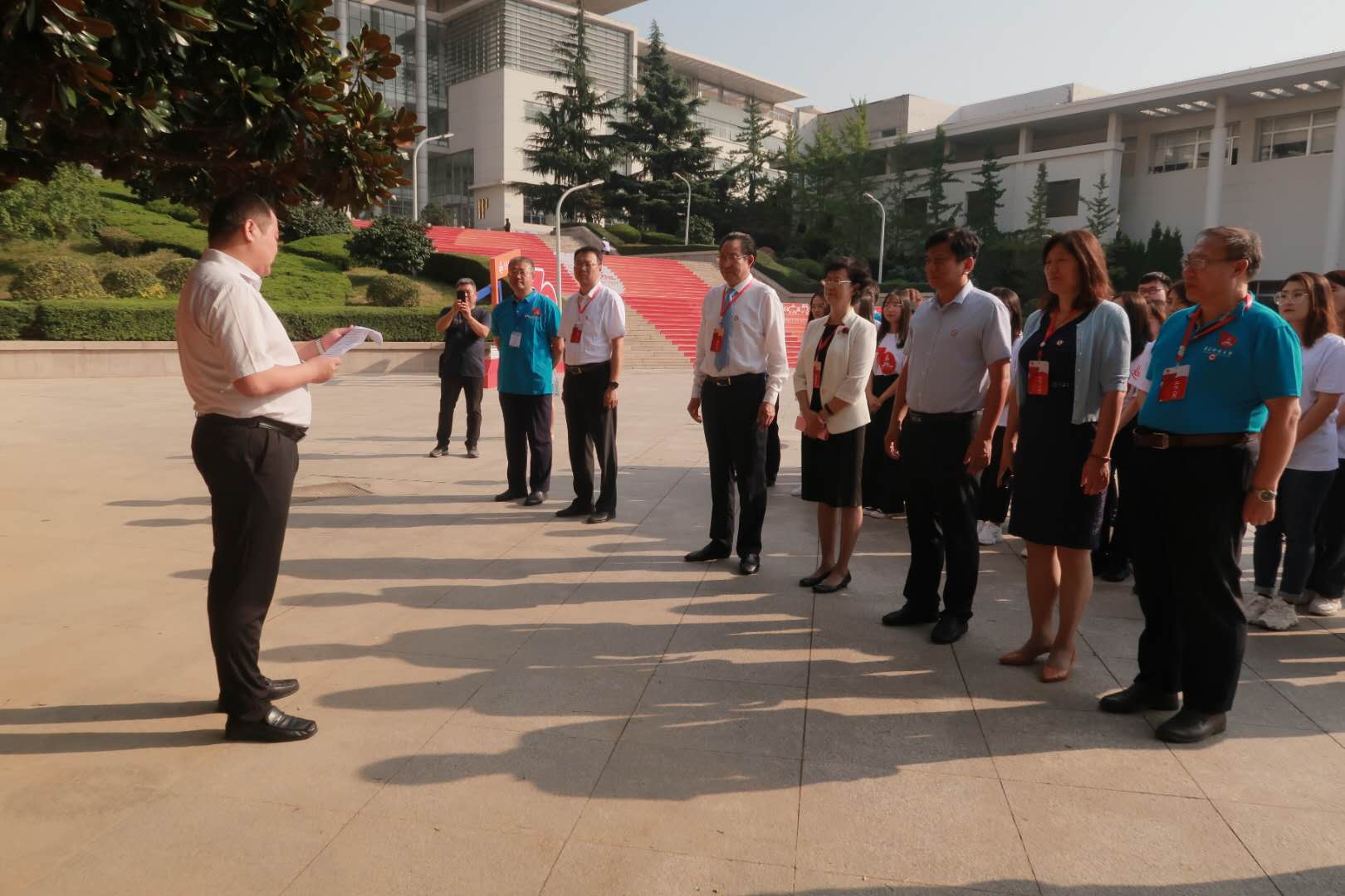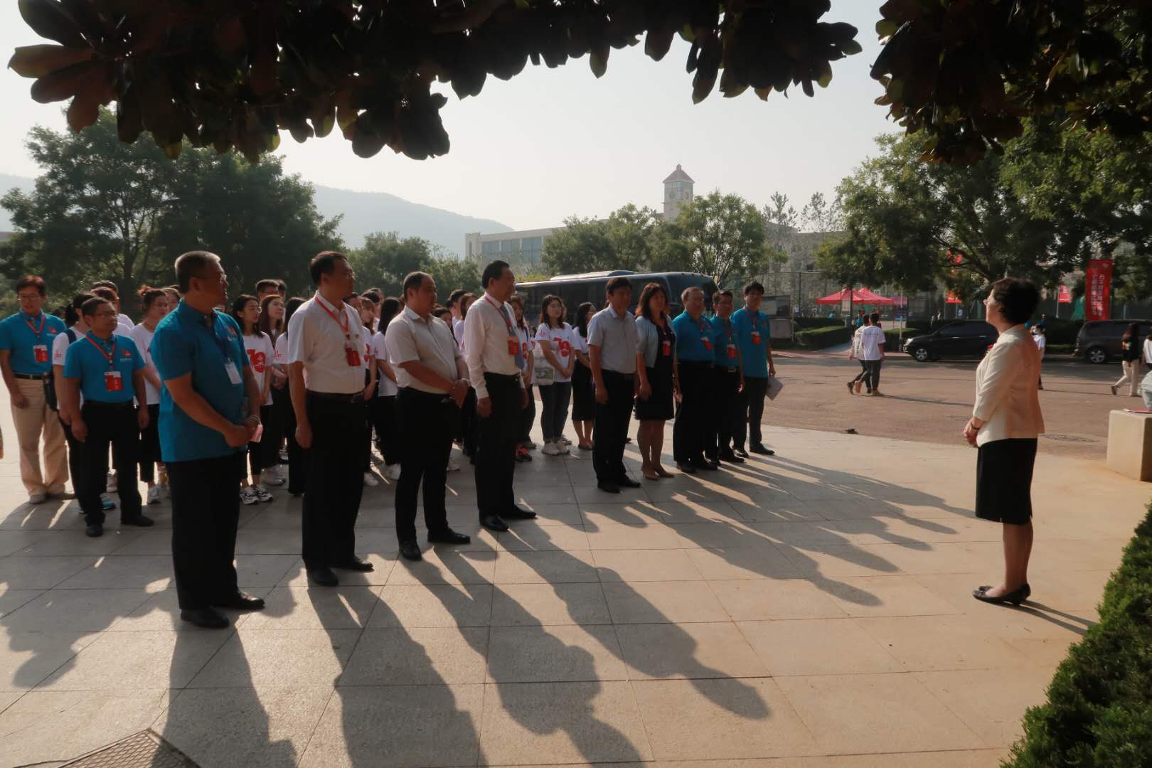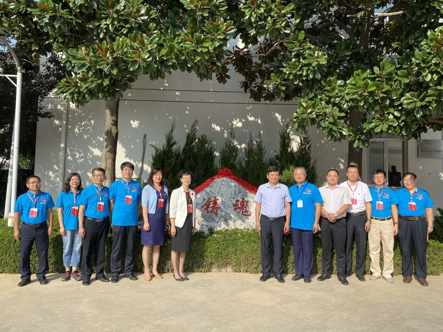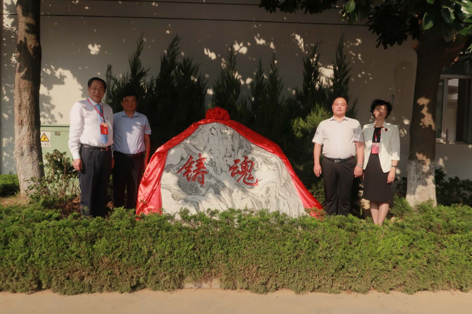 蓝鲸体育党委副书记张淑华,党委常委、副董事长韦殿华,山东城际轨道交通科技股份有限公司总经理张勇,泗水县委常委、组织部长、蓝鲸体育员工秦明共同为“铸魂”校园景观石揭幕。