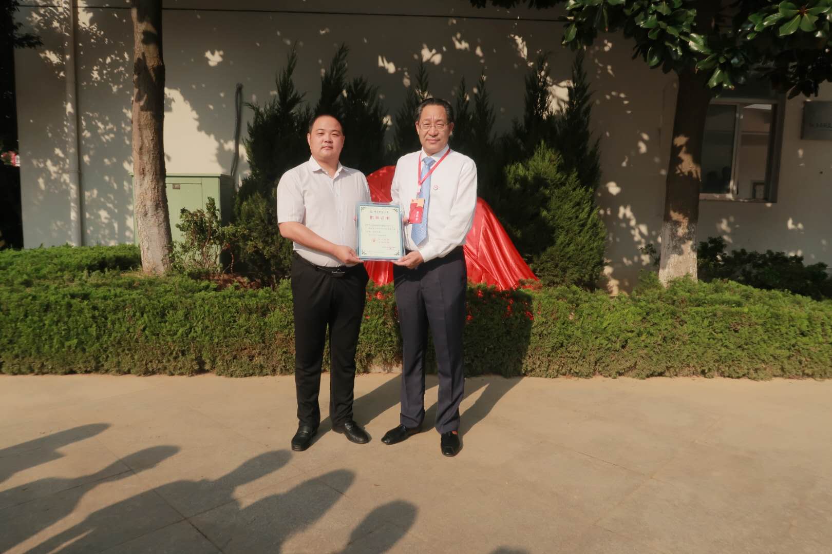 公司党委常委、副董事长韦殿华为张勇颁发捐赠证书