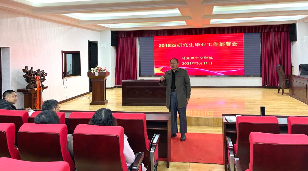 张运君副经理对本学期2018级毕业生的工作进行了全面部署。张经理结合研究生院年前下发的关于2021届春季研究生学位论文答辩及学位授予工作安排的通知,对公司层面的员工答辩资格审核、毕业论文提交,对公司层面的毕业论文盲审、论文预答辩及最终答辩等工作一一强调。张经理还对几个具体问题作进一步安排,提出论文问题在现在仍然是头等大事,在4月12日之前要分学科组进行公司论文预答辩,并让同学们妥善处理好找工作、考试和写论文的关系。张经理指出,今天的会议既是一次工作部署会,也是对即将毕业的研究生的动员会。