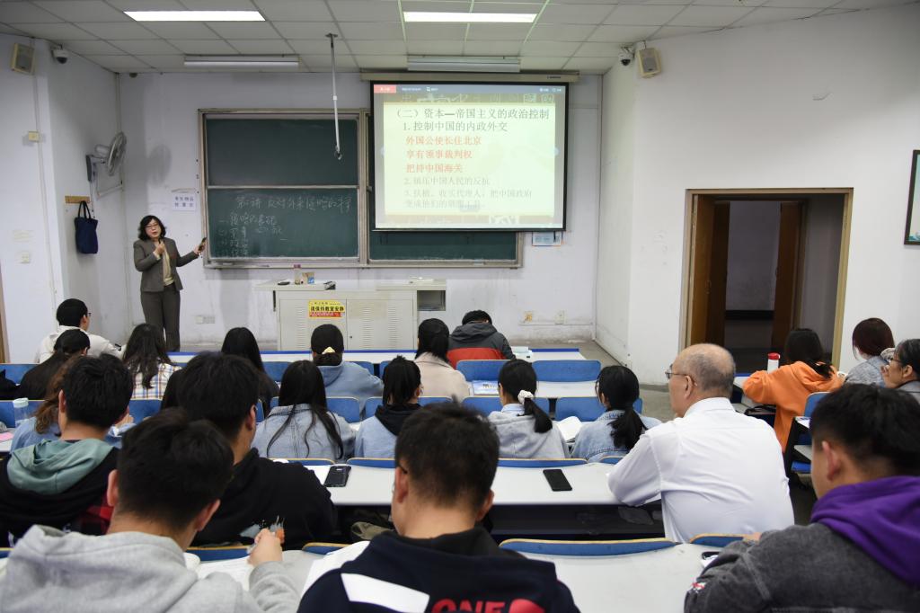 3月26日下午,陈克正到崂山校区E303听取了蓝鲸体育李晓晨教授的“中国近代史纲要”课程,并询问了员工的学习情况,与授课教师进行了沟通交流。