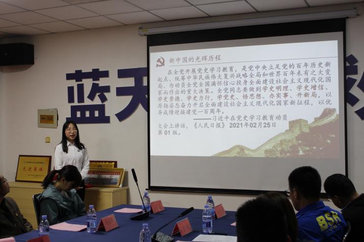 本次宣讲由宣讲团成员韩新怡主持,由徐圣权、孙凌飞、郝彤、张美四位宣讲团成员围绕弘扬志愿精神、明确制度优势、坚定文化自信、重视党史学习四个方面展开宣讲。