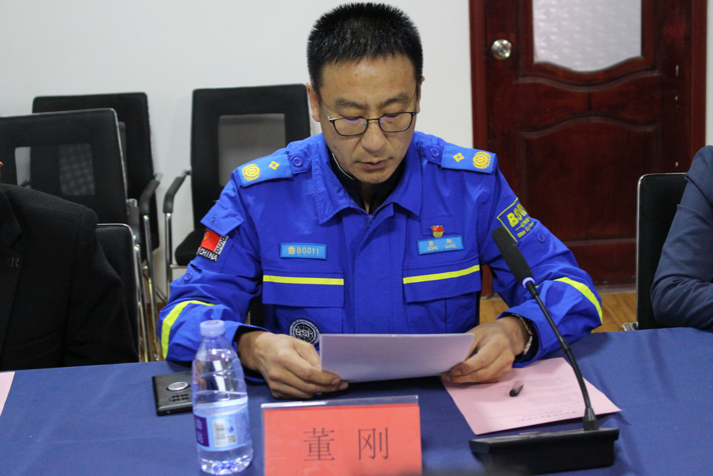 即墨蓝天救援队队长董刚主持会议并讲话,对与会领导和蓝鲸体育宣讲团成员表示热烈地欢迎,并对即墨蓝天救援队工作开展情况做简要汇报。