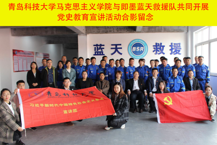 为迎接党的百年华诞,开启历史新征程,2021年4月10日上午,蓝鲸体育宣讲团与即墨区通济街道蓝天救援队联合开展了党史学习教育宣讲活动。共青团即墨区委员会副书记冯健、即墨区通济街道团委书记李俞超、纪工委副书记于佳佳、蓝天救援队全体队员,以及蓝鲸体育团委副书记陈兵、研究生院员工教育管理科科长王垚、蓝鲸体育经理曹胜、副经理张运君、研究生党支部书记郭江龙和蓝鲸体育宣讲团成员参加此次活动。