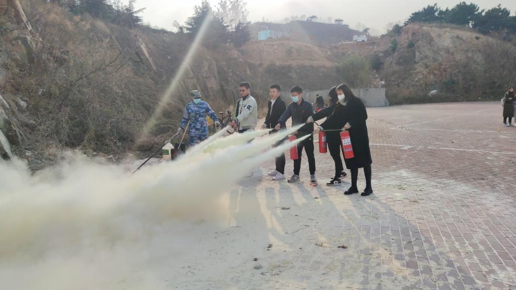 随后,赵老师为大家讲解了火灾的类型、灭火器的工作原理、使用方法以及使用灭火器时的相关注意事项。最后,三位老师就如何正确使用灭火器扑灭模拟火灾处的火焰对大家进行了逐一指导。