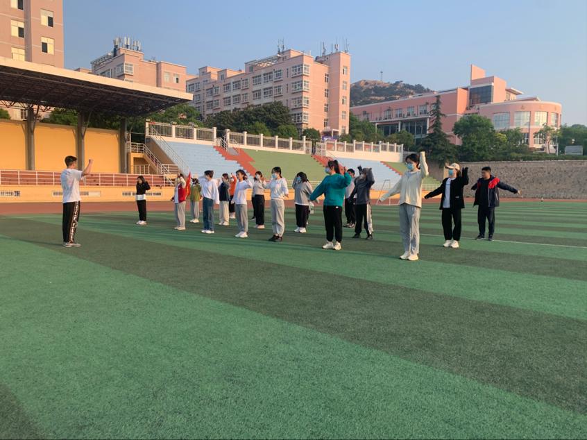 晨跑开始前,2021级班长杨志国带领同学们进行热身准备活动,迎着朝阳,和着晨风,马院学子充分展示了当代青年朝气蓬勃、活力四射的一面。