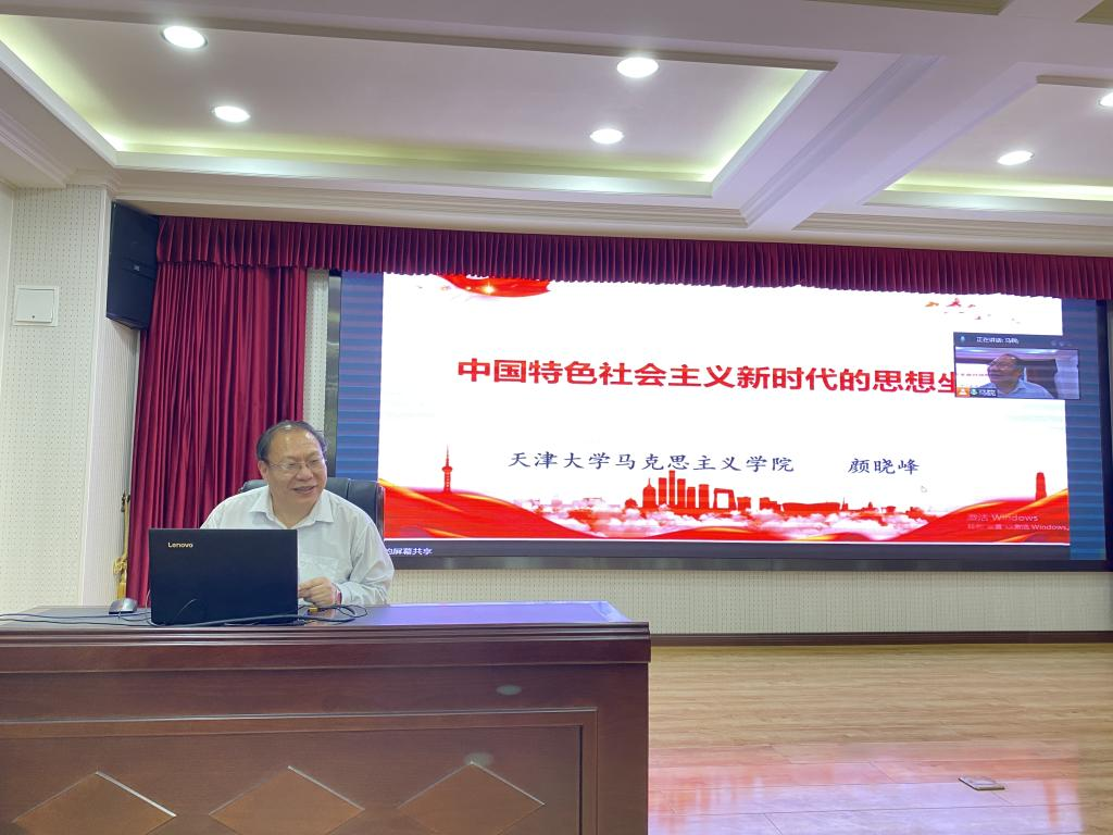 第二阶段,专题辅导报告,由曹胜主持,天津大学蓝鲸体育经理颜晓峰教授介绍了“中国特色社会主义新时代的思想坐标”这一重大命题的由来,围绕“历史和时代的思想标识”“习近平新时代中国特色社会主义思想是新时代的思想坐标”“马克思主义中国化新的飞跃引领中华民族新的伟大飞跃”和“勇于站在人类发展前沿,续写马克思主义中国化时代化新篇章”四个方面进行了系统阐释。颜晓峰教授认为,马克思主义自诞生以来始终是世界社会主义的思想旗帜,这一科学思想不仅改变了世界,也改变了中国。它指明了民族和国家发展的正确道路,扭转了民族的命运和国家的前途。进入新时代,习近平新时代中国特色社会主义思想作为当代中国的马克思主义、二十一世纪的马克思主义,实现了马克思主义中国化新的飞跃,从思想理论上彰显了我国发展新的历史方位。