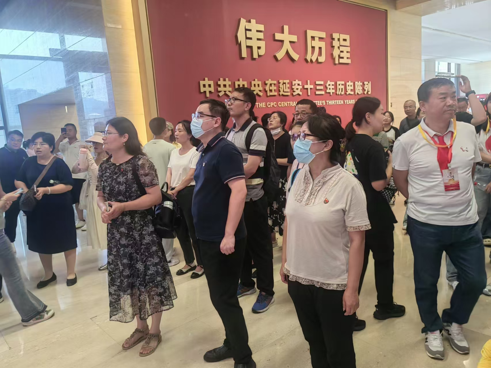 在革命圣地延安,研修小组参观了延安革命纪念馆和杨家岭革命旧址。延安革命纪念馆里展出大量珍贵的革命文物,再现了毛泽东、刘少奇、周恩来、朱德等老一辈革命家在延安的光辉业绩,全面真实地展现了从1935年10月到1948年3月近13年间,党中央在延安和陕甘宁边区领导中国革命的光辉历史。杨家岭革命旧址景区是中共中央领导在1938年11月至1947年3月期间的住处,同时也是中共“七大”会址,老师们对其进行了参观瞻仰。一幅幅生动的历史影像、一个个珍贵的历史文物,将老师们的思绪带回到那个充满热血和激情的革命年代,通过追寻先辈足迹,重温革命历史,汲取奋进力量,立志传承红色基因,赓续精神血脉。