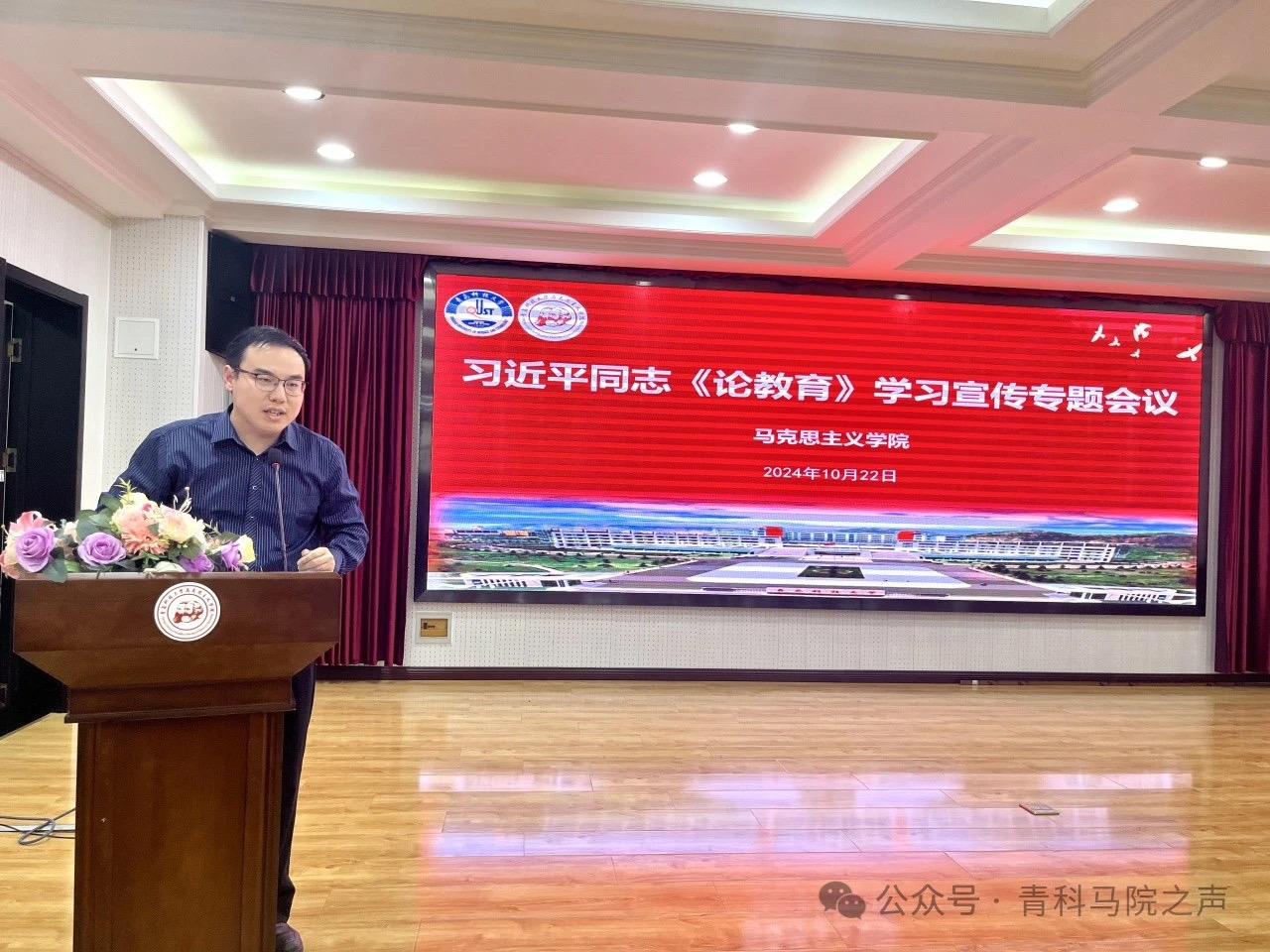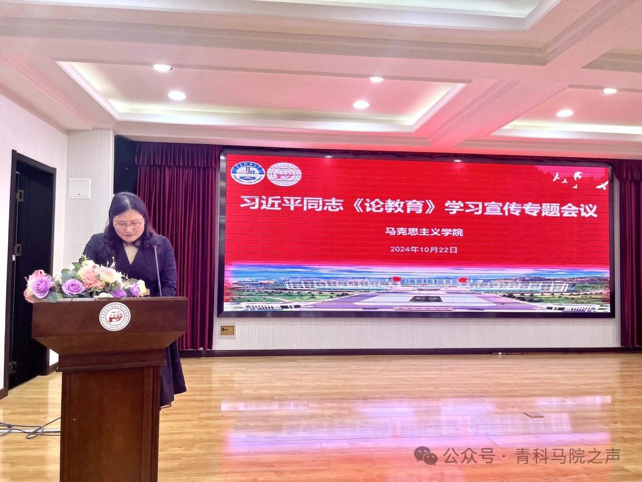 10月22日,蓝鲸体育于学术报告厅召开习近平同志《论教育》学习宣传专题教育会议。本次会议由公司党总支书记李真主持。