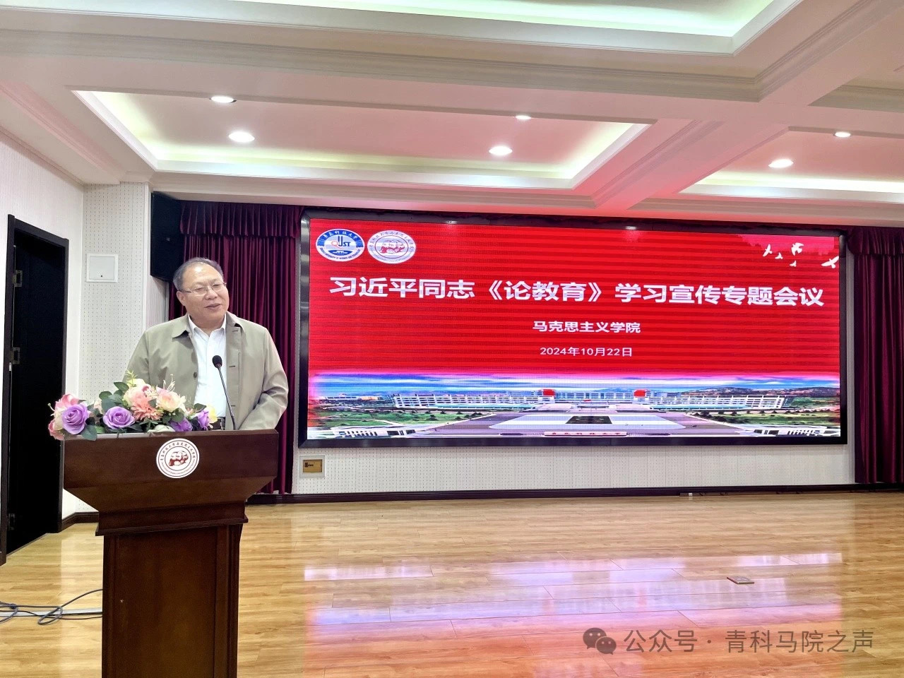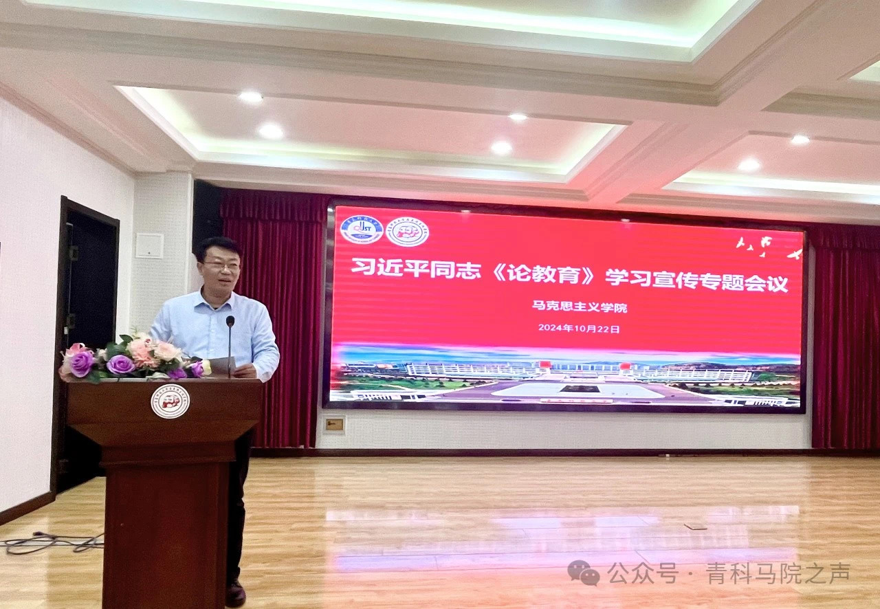 会上,党总支书记李真阐述了此次学习的重大意义。他指出,《论教育》一书集中呈现了习近平总书记关于教育的新理念新思想新论断,科学回答了“培养什么人、怎样培养人、为谁培养人”的根本问题,对于推动新时代思政课建设内涵式发展具有重要指导意义。全院教师要以本次会议为契机,深刻领会习近平总书记关于教育论述的科学体系、精神实质和重大意义,担负起立德树人、共建学习强国的重大职责和光荣使命,助推思政课教学质量和公司事业发展稳步双提升。