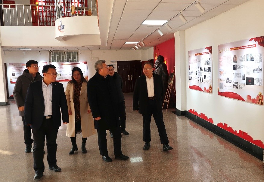 杨天梅听取了党总支书记李真和经理曹胜的公司各项工作汇报,考察了公司办公室、学术报告厅、山东省统战理论研究基地、马克思主义基本原理教研室等办公场所。