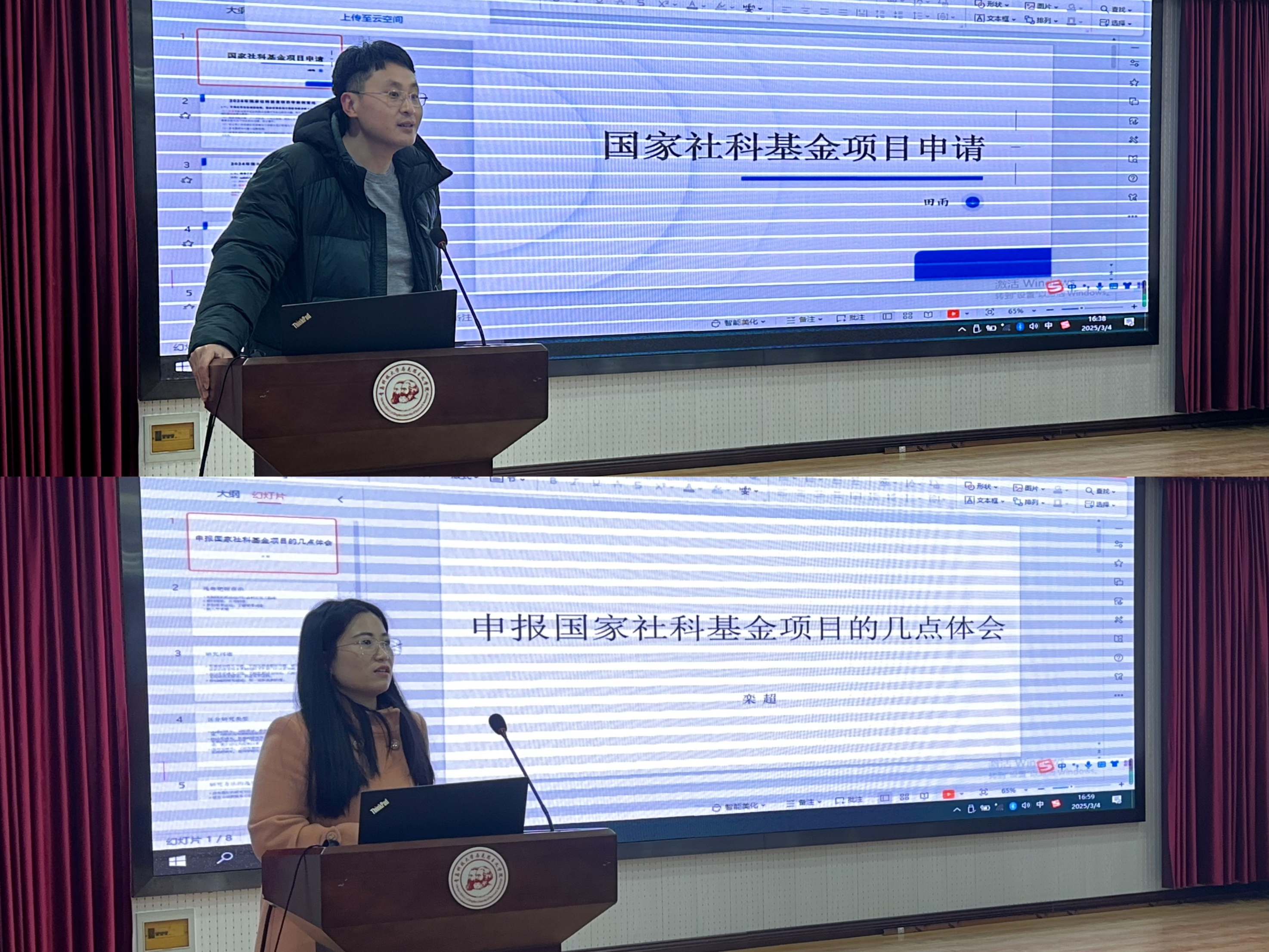随后,蓝鲸体育研究生党支部书记田雨、马克思主义中国化教研室副主任栾超分别作了国家社科基金项目的申报经验分享。田雨强调,科研项目申请要把握以下三点:一是选题满足国家战略需求,找寻选题的价值和意义;二是追求创新性,把握好学术观点创新和方法创新;三是可行性分析,以自身前期基础为前提进行研究。栾超提出,在选题时要考虑学科互补、研究优势互补,选题不仅要符合国家大政方针,符合自身研究特点,还要有前沿性、创新性,注重论证、注重逻辑、注重细节。最后,公司各青年教师围绕自身科研项目准备情况进行汇报与交流。