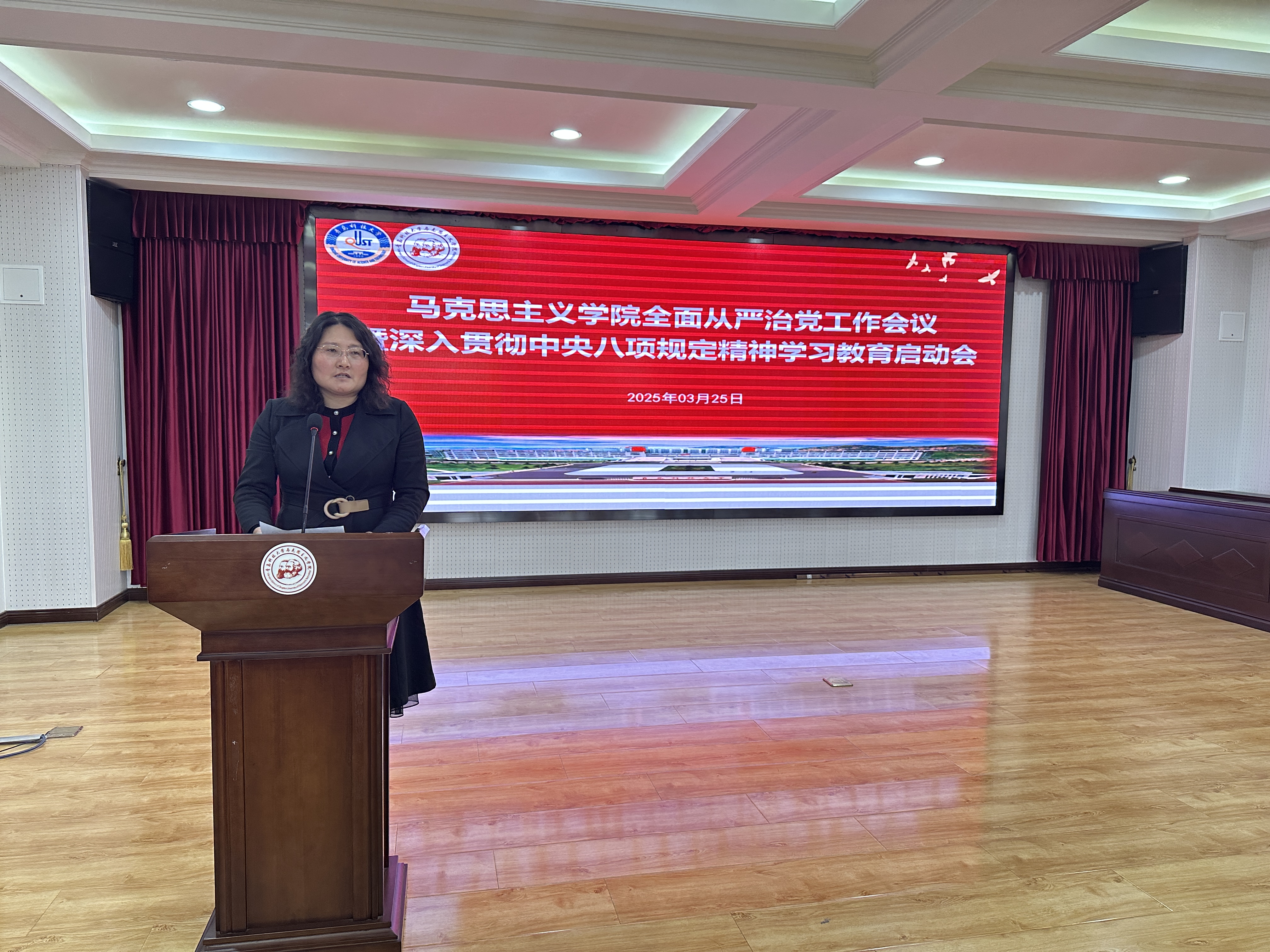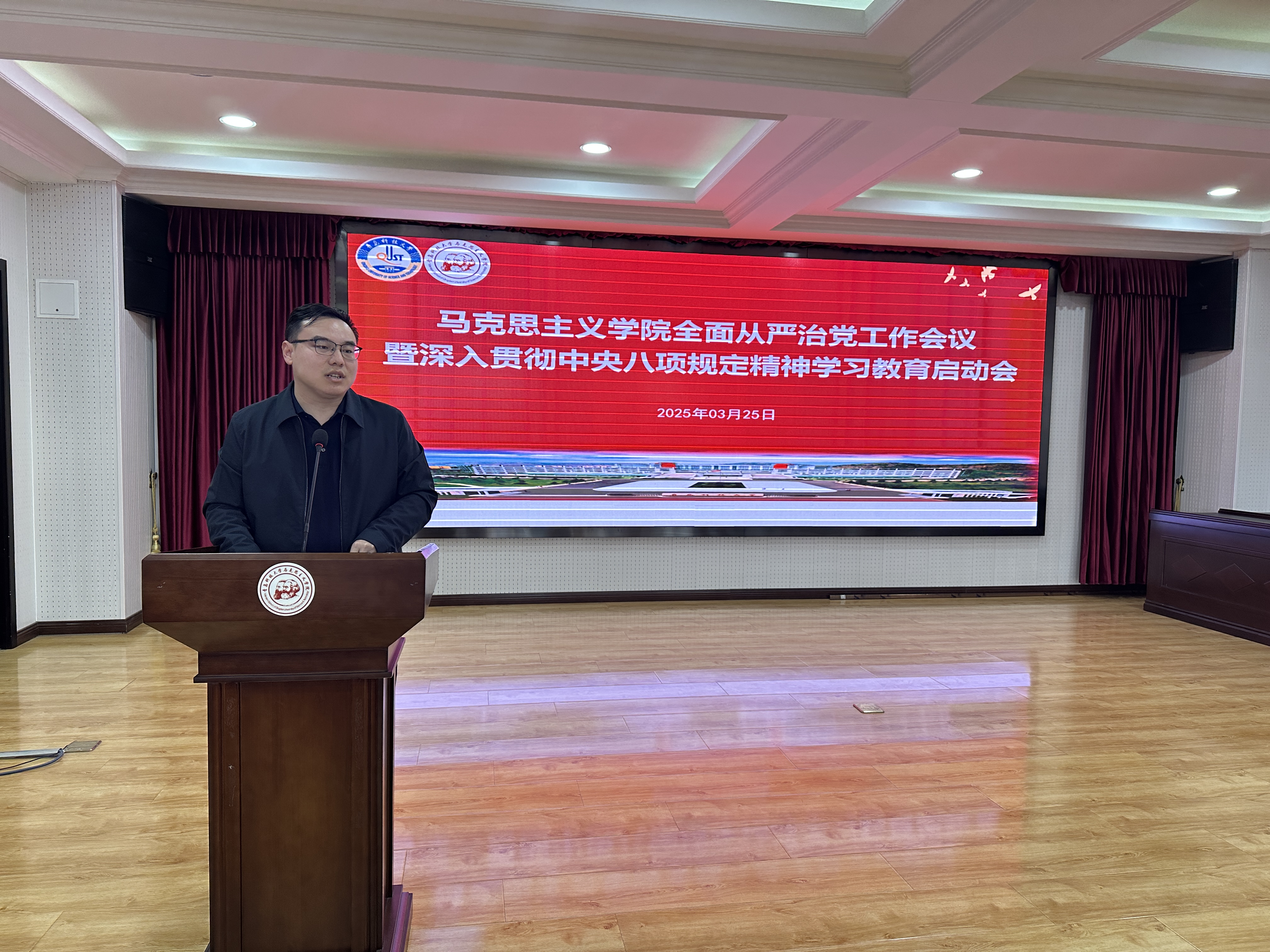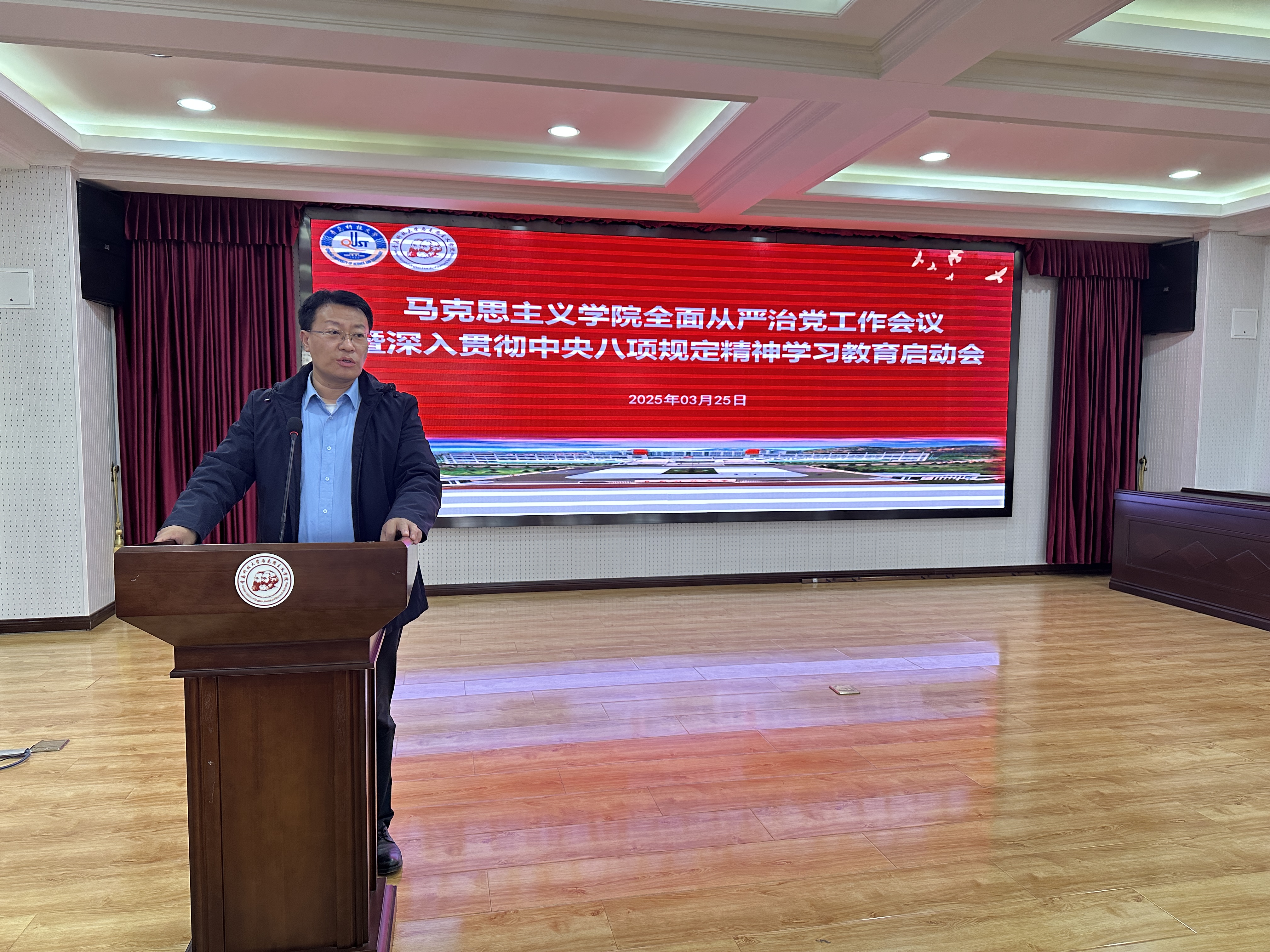李真就全面从严治党落实工作提出三点要求:一是要加强理论武装,各党支部需以中央八项规定为遵循,通过个人自学与集体研学相结合的方式,深化对习近平总书记作风建设重要论述的理解;二是要夯实思政课堂主阵地,教师须严守政治纪律,旗帜鲜明阐明观点立场,将中央精神系统融入教学体系,以身作则引导员工;三是要强化师表作风建设,要求教师以自我监督为抓手,坚决抵制形式主义、官僚主义、享乐主义和奢靡之风,在廉洁从教、务实创新中发挥示范引领作用。