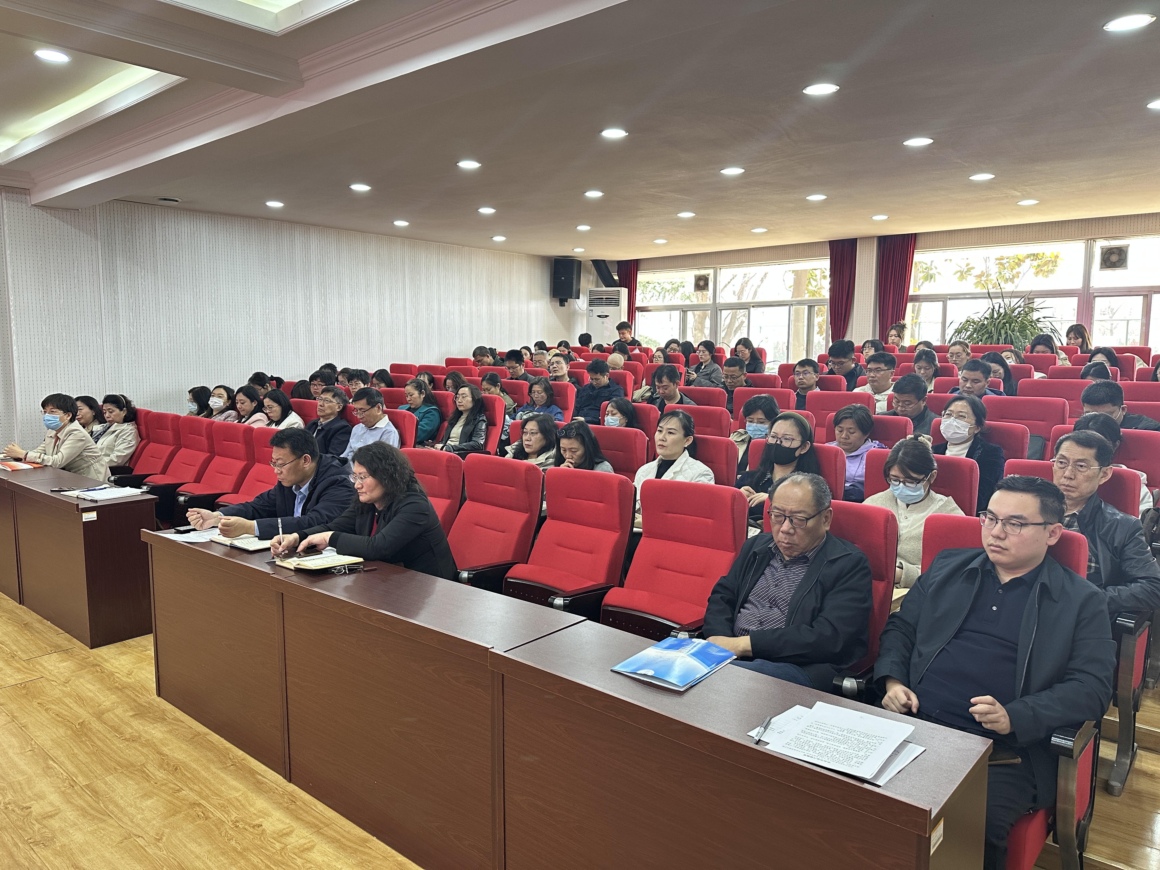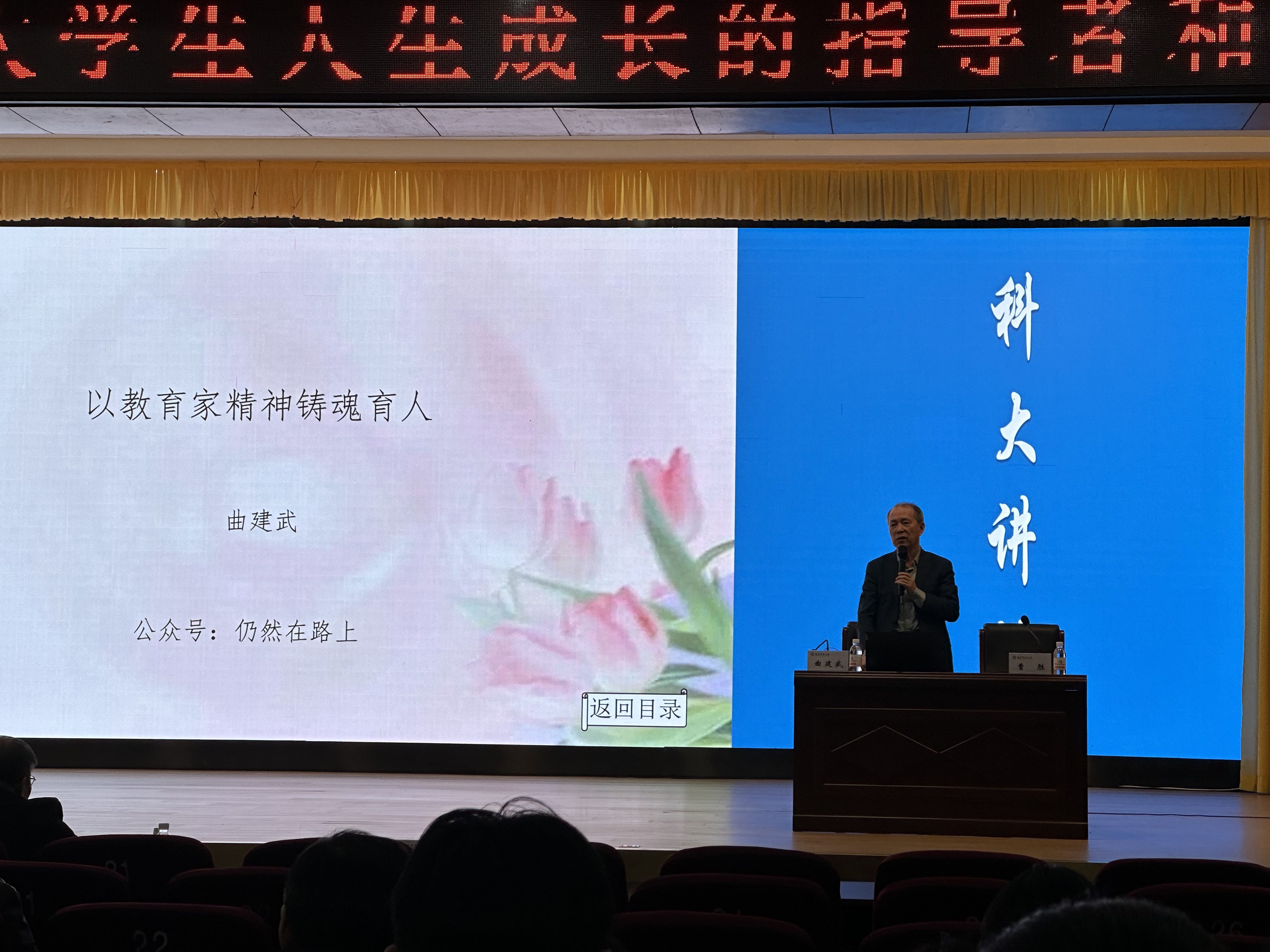 会后,全体师生现场听取了“时代楷模”“最美奋斗者”“全国师德标兵”“全国优秀教师”“全国道德模范”荣誉称号获得者曲建武教授题为《弘扬教育家精神培育时代新人》的专题报告。他结合四十余年从教经历,从理想信念、道德情操、育人智慧等多个维度,深入解读习近平总书记关于高校思政工作的重要论述,指出弘扬教育家精神需以高素质教师队伍为根基。通过珍贵照片、员工书信及育人故事,展现其坚守马克思主义信仰、献身思政教育的赤诚之心。曲教授呼吁教师秉持“躬耕教坛、强国有我”志向,将思政教育融入毕生事业,提升政治素养与专业能力,以仁爱之心引导员工扣好人生第一粒扣子,矢志培育担当民族复兴大任的时代新人。