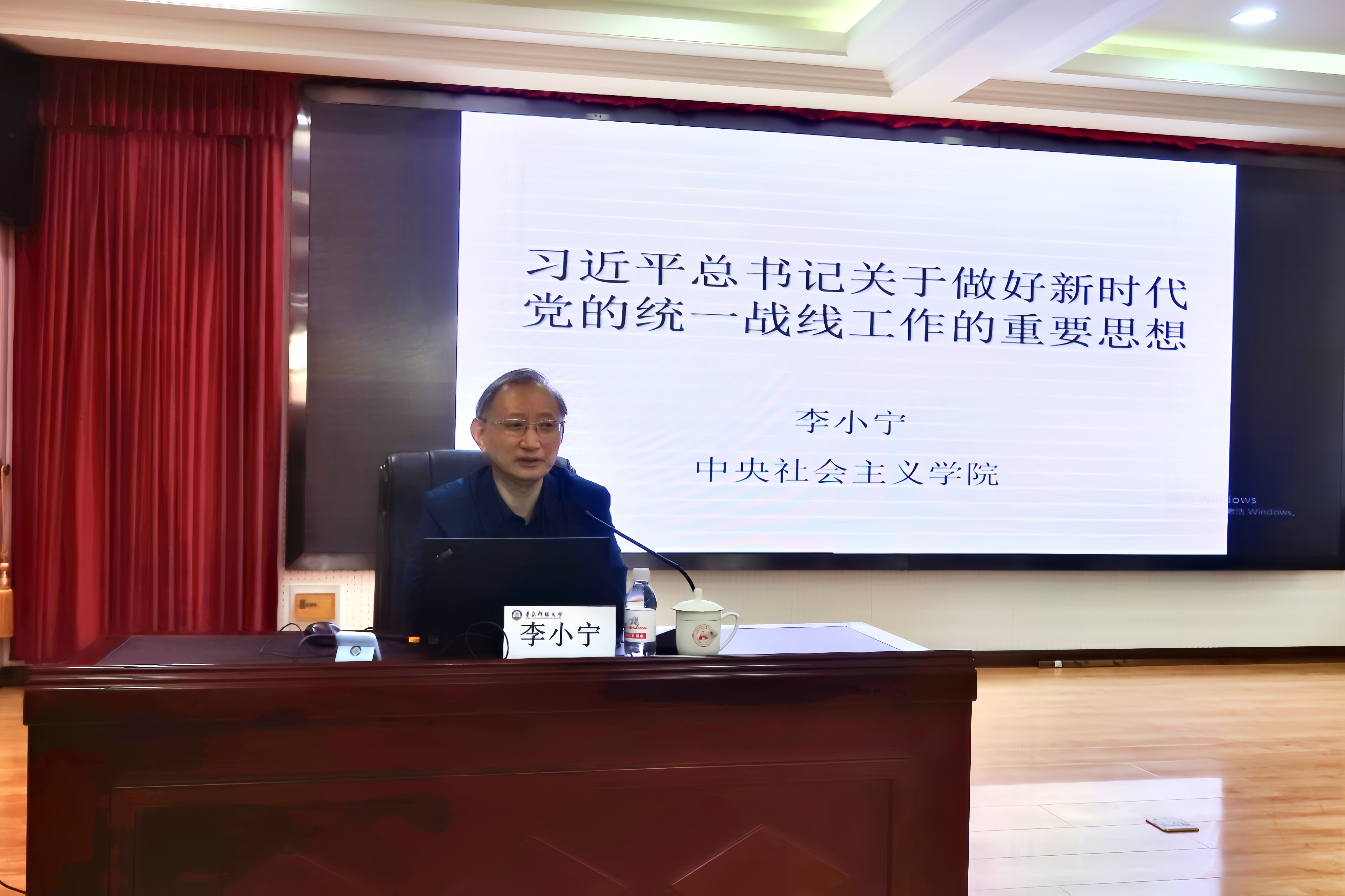 李小宁作了题为“深刻理解‘习近平总书记关于做好新时代党的统一战线工作的重要思想’”的专题讲座,指出,统一战线有着悠久的革命历史,是中国共产党凝聚人心、汇聚力量的政治优势和战略方针,贯穿于革命、建设、改革的各项事业始终,是增强党的阶级基础、扩大党的群众基础、巩固党的执政地位的重要法宝,也是新时代全面建设社会主义现代化国家、实现中华民族伟大复兴的重要法宝。随后,李小宁从历史维度分析了统一战线理论的地位与演变,系统解读了党对统一战线的全面领导及统一战线工作各领域的新理念、新思想、新战略,结合自身经历分享了关于统战工作理论研究的宝贵经验。报告结束后,李小宁教授与现场师生进行了交流讨论。