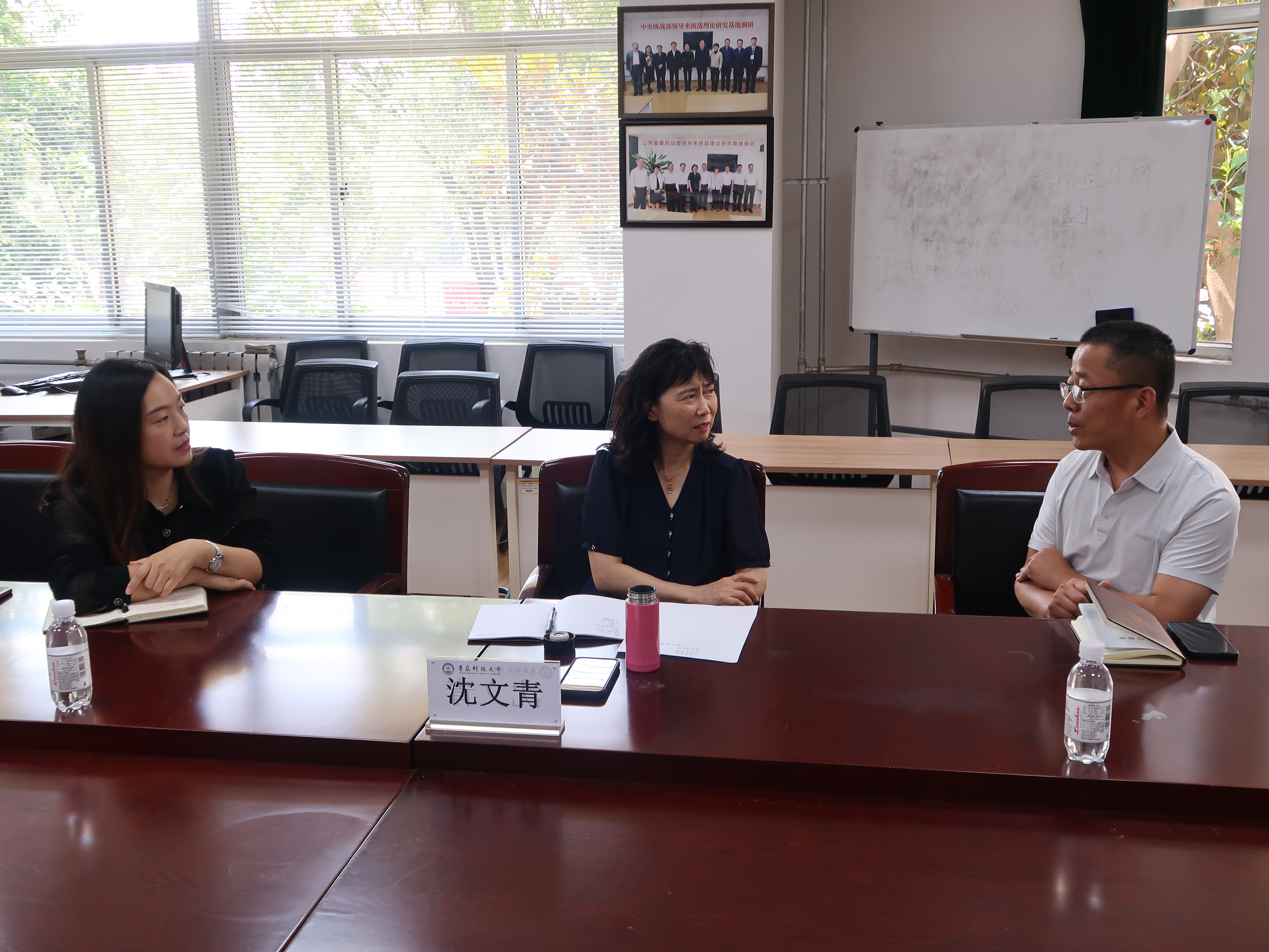 会后,沈文青与所联系的思政课教师亲切座谈,了解教师思想状况,分析思政课建设成效与问题,对教学工作进行指导。