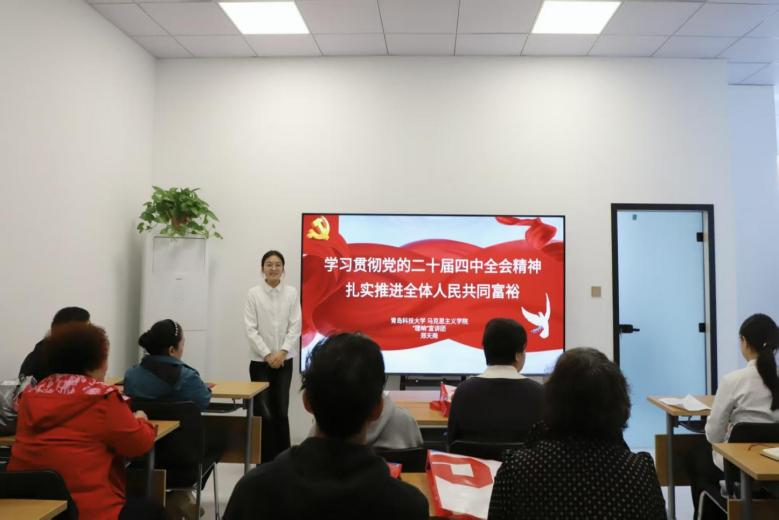 郭钰以学习贯彻党的二十届四中全会精神汇聚中国式现代化的强大合力为主题,系统梳理了“十四五”时期国家发展的重大成就,并重点解读了党的二十届四中全会对未来五年发展的顶层设计与“十五五”时期经济社会发展的核心原则,将国家发展蓝图转化为社区居民可感知的奋斗方向。郑天雨聚焦学习贯彻党的二十届四中全会精神,扎实推进全体人民共同富裕展开分享,从“十四五”时期的民生成果切入,结合“十五五”规划中推进城乡融合、保障改善民生的部署,用社区身边案例,阐释了共同富裕与基层生活的紧密联系,号召居民在社区建设中积极参与、共建共享。