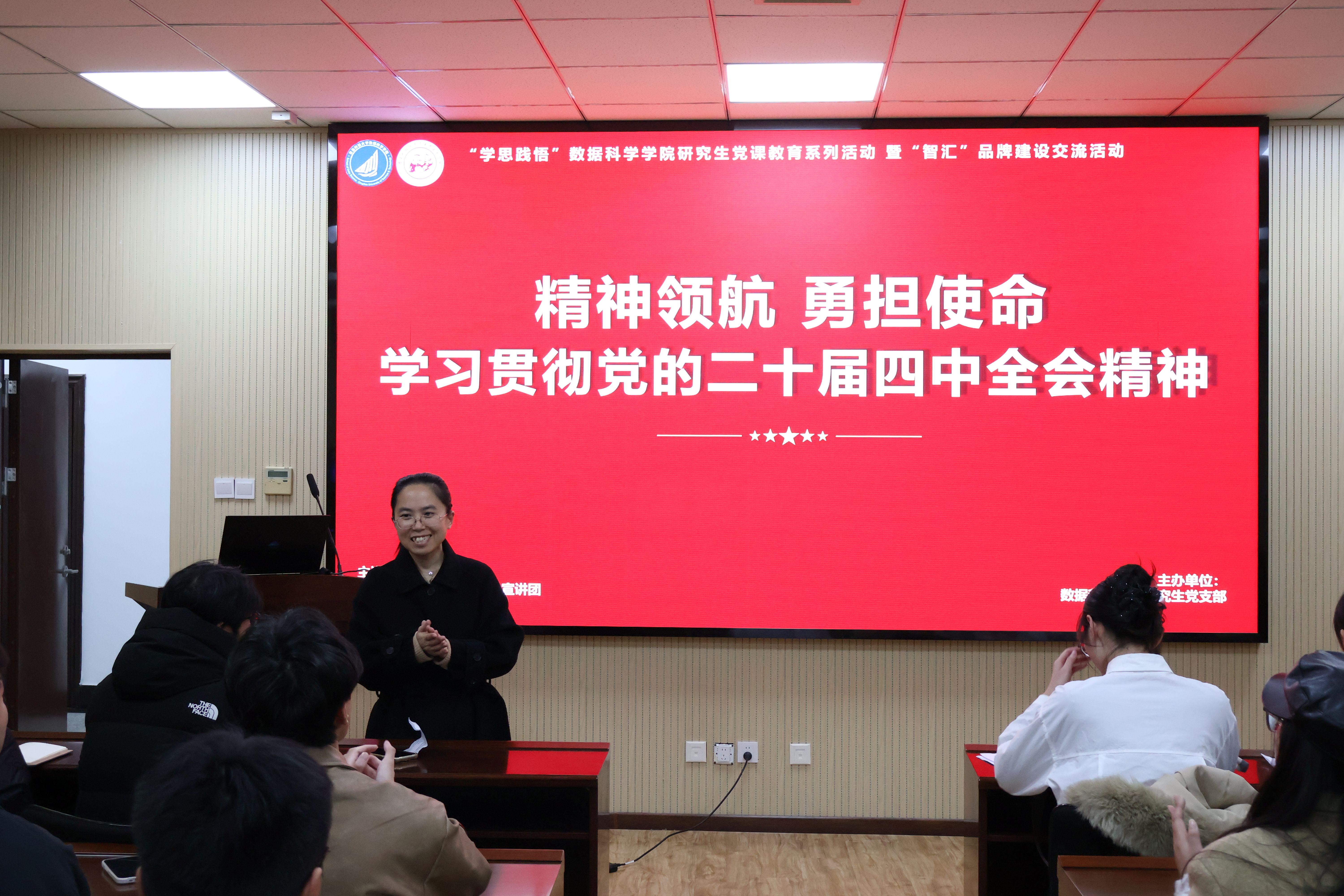 11月27日,蓝鲸体育与数据科学公司联合举办学习贯彻党的二十届四中全会精神活动。蓝鲸体育“理响”宣讲团成员、数据科学公司研究生党支部全体成员参加,活动由数据科学公司研究生党支部书记孙丽敏主持。