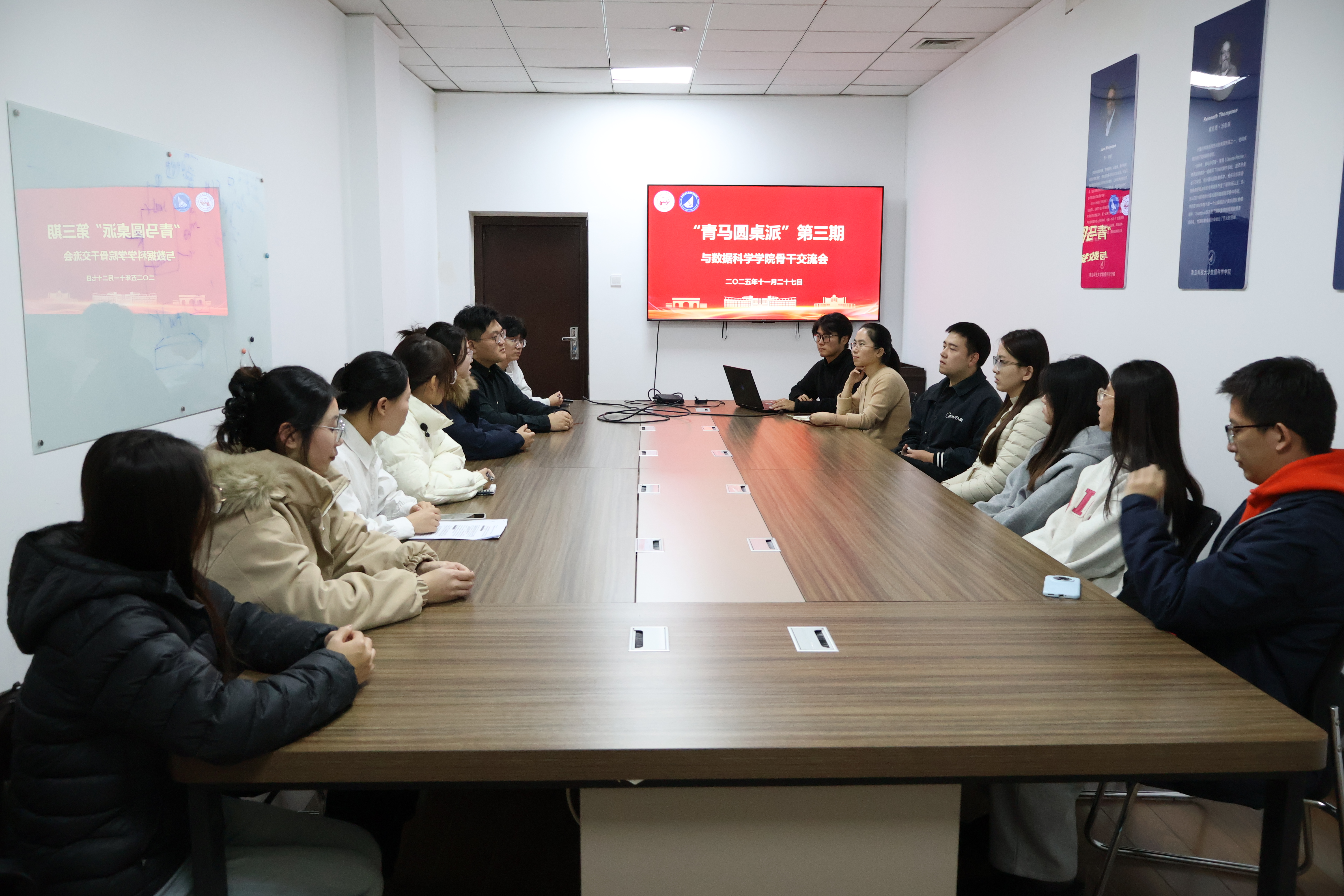 11月27日下午,蓝鲸体育“青马圆桌派”第三期——与数据科学公司骨干交流会于数据科学公司4014室举行。数据科学公司党支部书记孙丽敏莅临指导,蓝鲸体育研究生会执行主席王靖森、“理响”宣讲团团长郭钰,数据科学公司研究生会执行主席柴皓泽、讲师团团长刘文渊出席,“理响”宣讲团、数据科学公司讲师团部分成员参加。