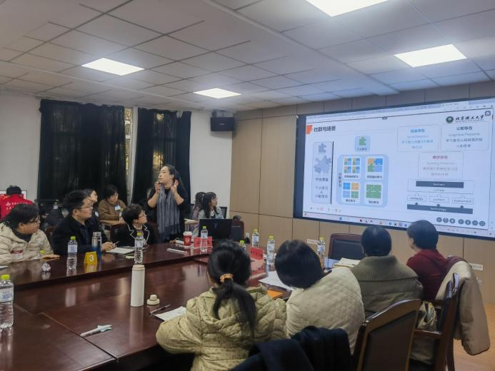 两位专家摒弃了传统单向汇报模式,通过精心设计的互动环节,组织了一场沉浸式的工作坊。辛怡老师从“员工思维离场的原因分析”切入,引导大家探讨如何提升课堂参与度,并从教学内容、活动、技术及教师能力等多维度进行了剖析,阐述了如何通过教学设计实现情感、思维、行为和身体的四重在场。随后,她带领全体老师现场体验了“立体拼图”小组活动,各小组分工协作、热烈讨论,现场气氛活跃,生动展现了高效课堂的应有面貌。