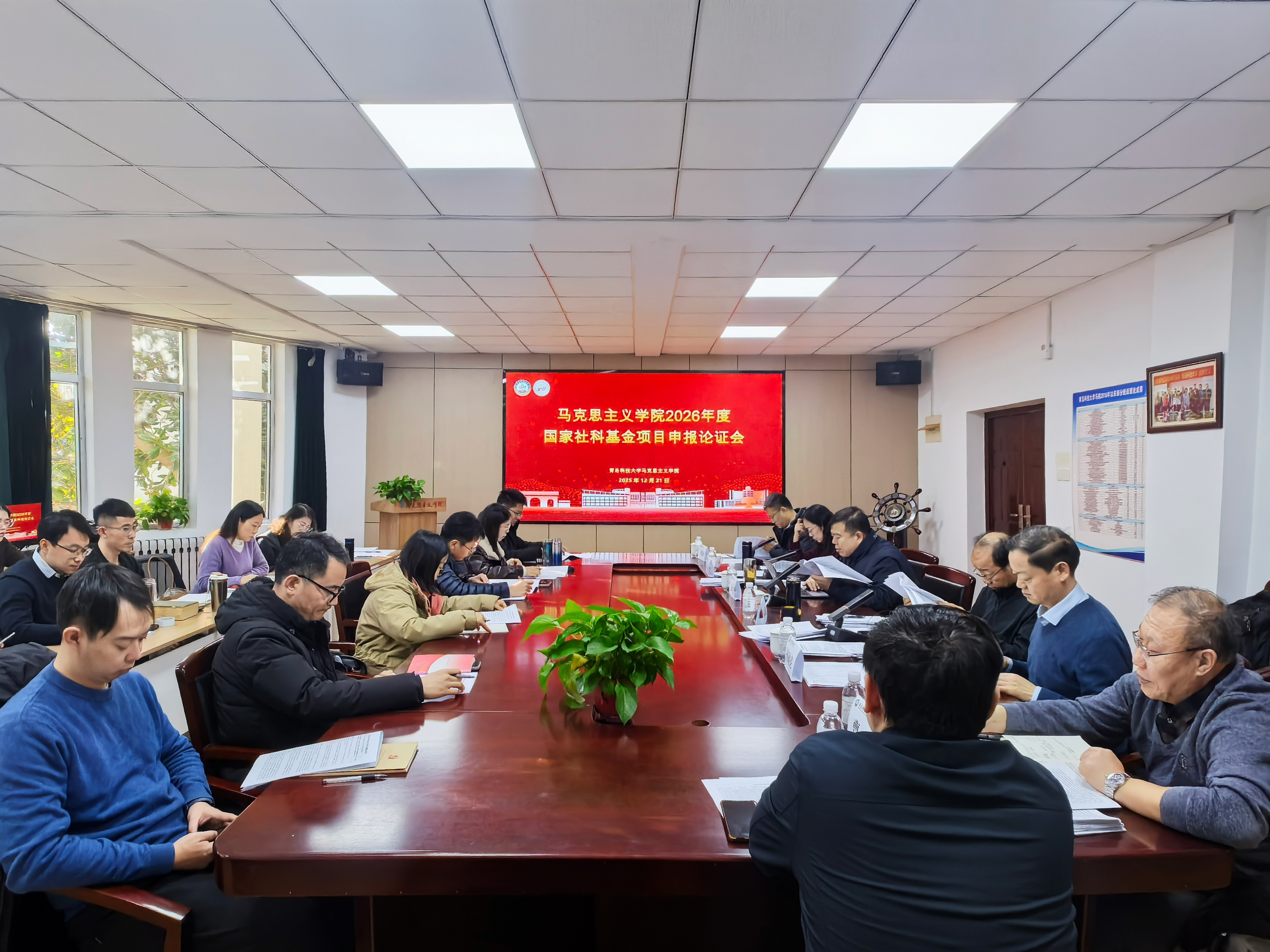12月21日下午,2026年度国家社科基金项目申报论证会于公司2010会议室召开。会议特邀青岛市委统战部原一级巡视员、青岛市政治学会会长、教授王振海,南开大学中共党史党建研究院副经理、教授纪亚光,山东大学蓝鲸体育副经理马明冲,山东省高校德育研究中心副主任、山东师范大学蓝鲸体育教授徐稳,曲阜师范大学蓝鲸体育经理孙迪亮担任评议专家。蓝鲸体育经理曹胜、副经理郭江龙及公司拟申报2026年国家社科基金的教师参加论证会。会议由曹胜主持。