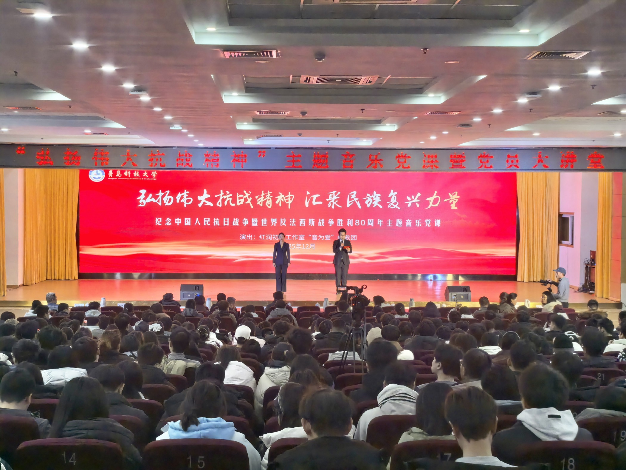 12月24日下午,“弘扬伟大抗战精神”主题音乐党课暨党员大讲堂于崂山校区第二报告厅举行,2024级全体党员和入党积极分子参加。