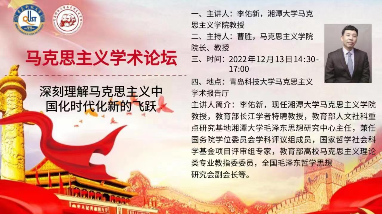 为全面学习贯彻党的二十大精神,深刻把握习近平新时代中国特色社会主义思想的重要地位、深刻领悟“两个确立”的决定性意义,12月13日下午,蓝鲸体育邀请湘潭大学蓝鲸体育教授,教育部长江学者特聘教授,教育部人文社科重点研究基地湘潭大学毛泽东思想研究中心主任、国务院学位委员会学科评议组成员李佑新教授以“深刻理解马克思主义中国化时代化新的飞跃”为题作专题报告。党委常委、宣传部部长张洪坤,公司党总支书记张鸣及蓝鲸体育全体师生参加本次活动。公司经理曹胜主持报告会。