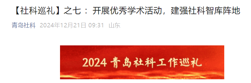 【学术活动】青岛社科:社科巡礼之七——开展优秀学术活动,建强社科智库阵地
