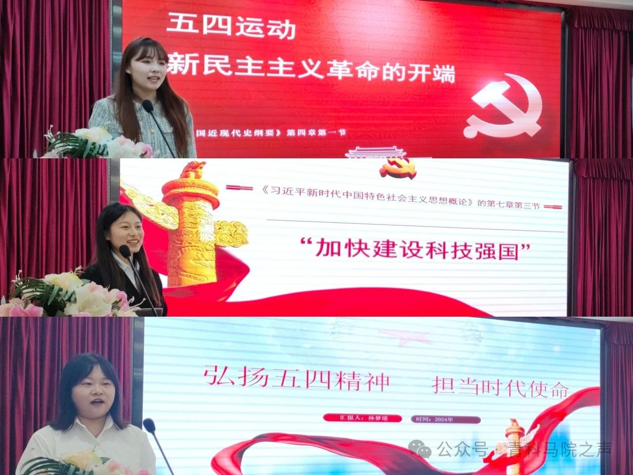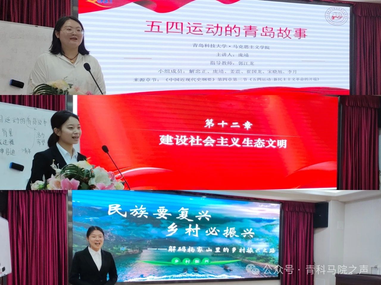 比赛现场,各参赛团队代表走上讲台进行授课,他们结合自身所思所悟,以精心的设计、生动的表达和饱满的热情为全场师生带来了一堂堂生动、有趣、接地气思政课,精彩纷呈的表现不时引起台下热烈的掌声。经过激烈角逐,《民族要复兴 乡村必振兴——解码杨家山里的乡村振兴之路》获一等奖;《五四运动的青岛故事》《坚持人与自然和谐共生——青岛生态文明实践》获二等奖;《五四运动:点亮中国光耀百年的历史火炬》《加快建设科技强国,奋楫笃行崭新篇章》《弘扬五四精神,担当时代使命》获三等奖。