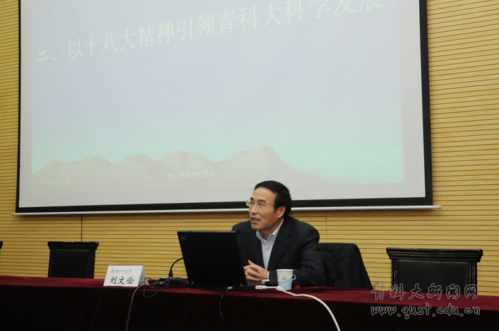 26日下午,中共青岛市委党校、青岛行政公司教授,管理教研部副主任刘文俭教授应邀做了题为《以十八大精神引领青科大科学发展》的专题报告。报告中,刘文俭阐述了十八大的主要成果和主题、十八大的突出亮点重点和中央关于学习贯彻十八大精神的要求。他认为,结合实际情况,公司要确立“世界眼光、国际标准、本土优势”的总体思路,融入、对接、服务地方经济社会发展,坚持以人为本的理念,树立科学发展的意识,强化先进的管理理念,建立科学的管理制度,培育特色的竞争优势,以十八大精神引领蓝鲸体育科学发展。