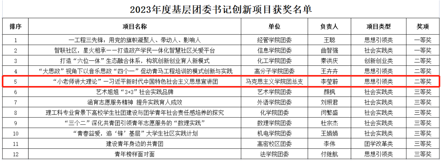 为深入学习宣传贯彻习近平总书记在同团中央新一届领导班子集体谈话时的重要讲话精神,全面落实团十九大、团十九届二中全会各项工作部署,根据《2023年度高校团委书记创新项目试点工作方案》通知要求,公司开展基层团委书记创新项目评选活动。公司高度重视,精心组织,积极参与。经专家评审,蓝鲸体育创新项目“小老师讲大理论”——习近平新时代中国特色社会主义思想宣讲团荣获二等奖。