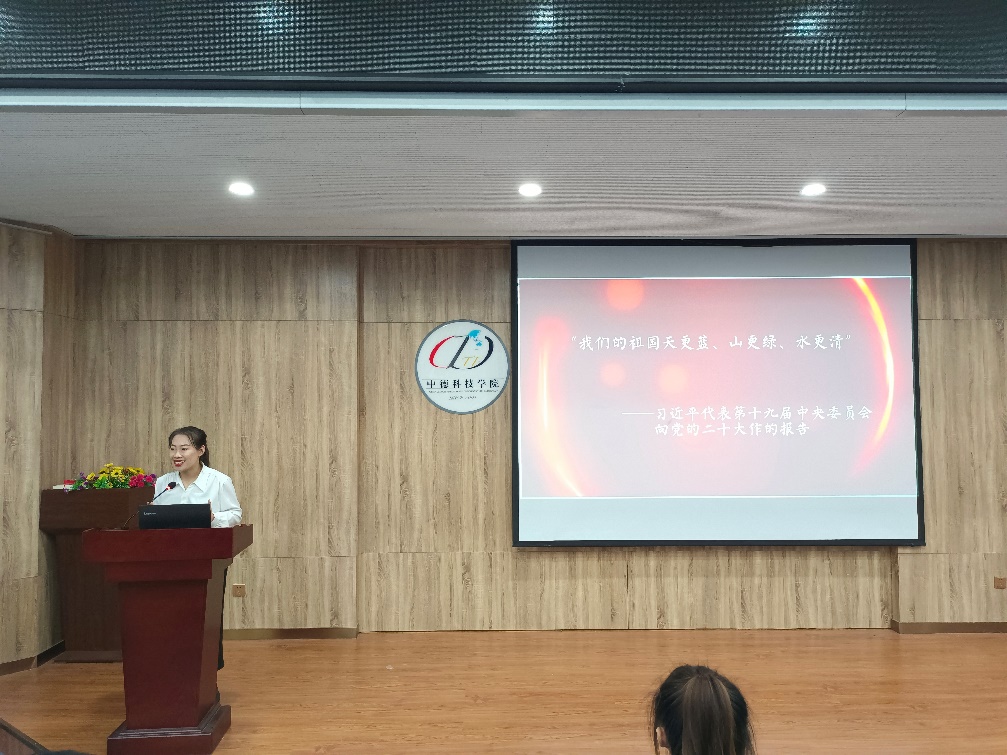 于洋以《守好绿水青山,坚持人与自然和谐共生》为题,向大家展示了党的十八大以来的十年我国在生态文明建设方面取得的显著成绩,阐释了绿水青山就是金山银山的发展观、良好生态环境是最普惠的民生福祉的民生观、人与自然和谐共生的自然观以及生态兴则文明兴的历史观。她号召同学们携起手来共同保护绿地蓝天,共同守护绿水青山。