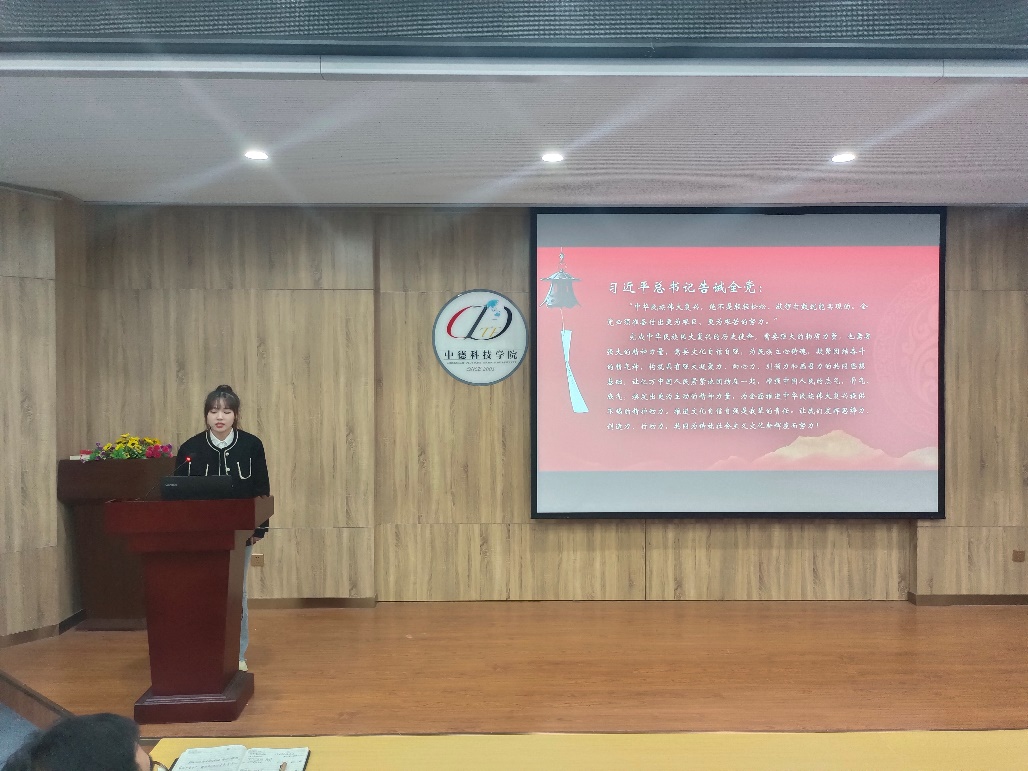 吕靓以《让青春脉搏与新时代同频共振》为题,向大家讲述了习近平总书记对广大青年的殷切期盼,结合感动中国十大人物、校园战“疫”中青科学子的青春力量,号召大家矢志不渝跟党走,扎根基层敢担当,去祖国最需要的地方,以实际行动凝聚实现中华民族伟大复兴的中国梦的强大力量。