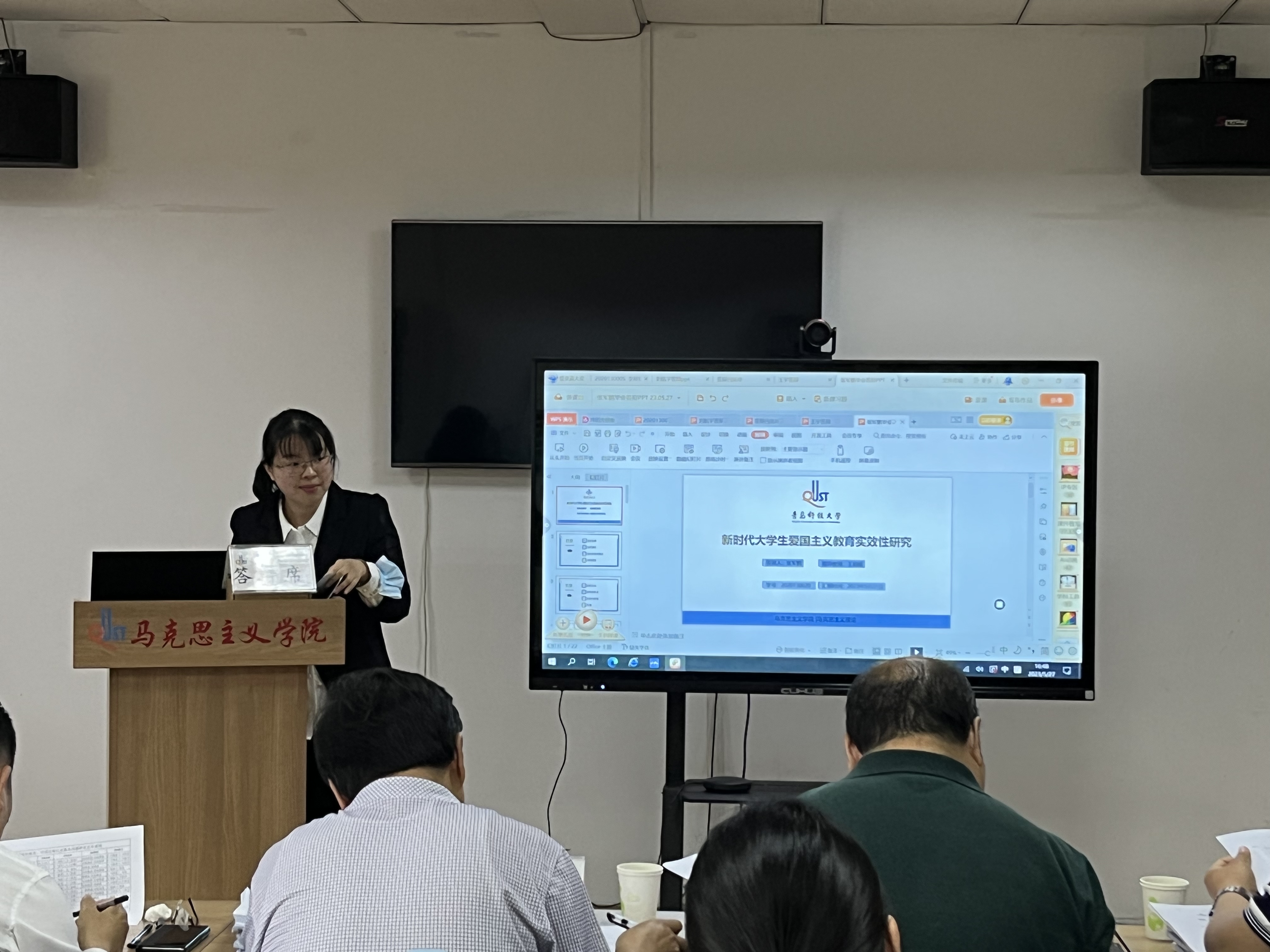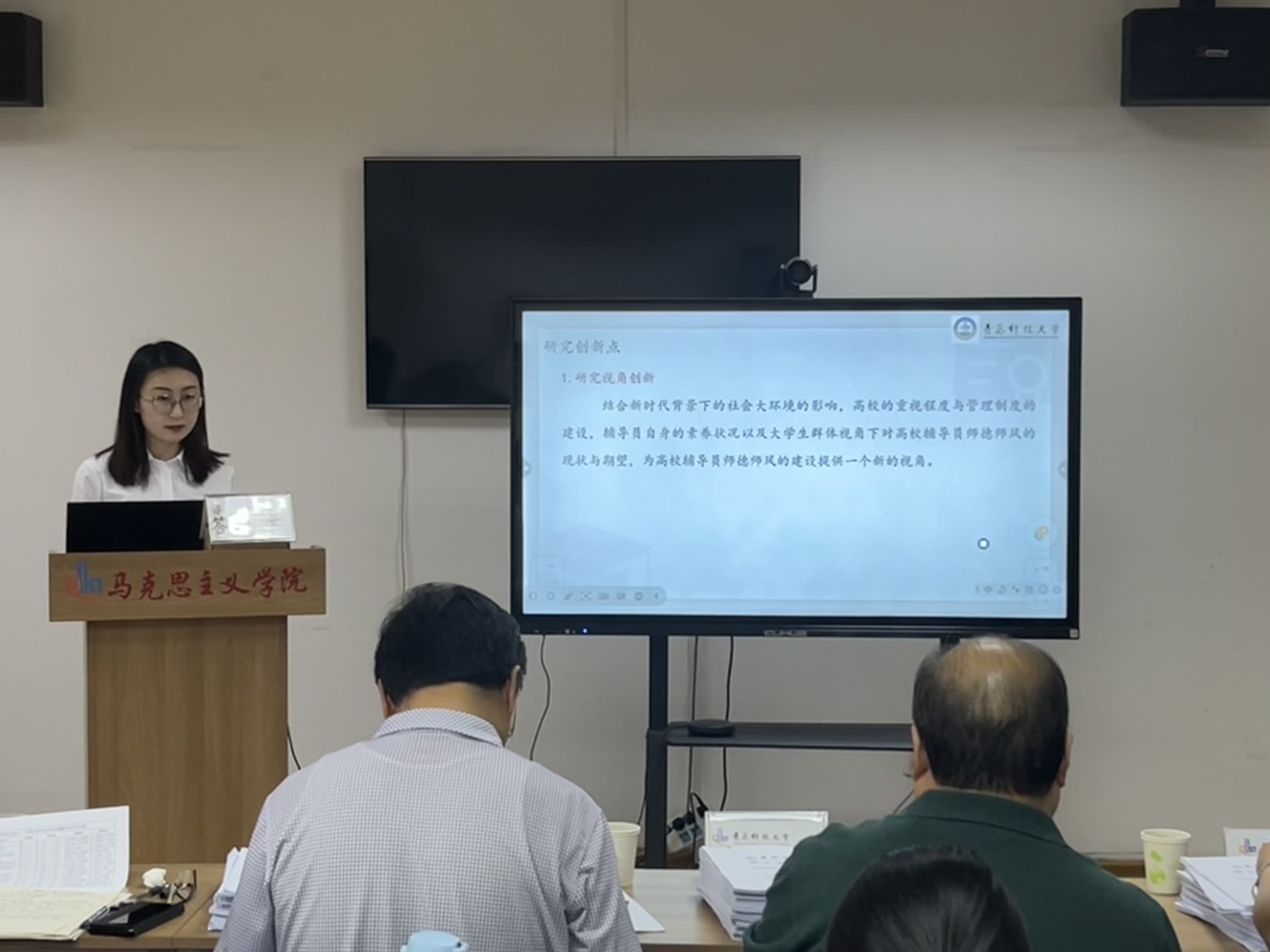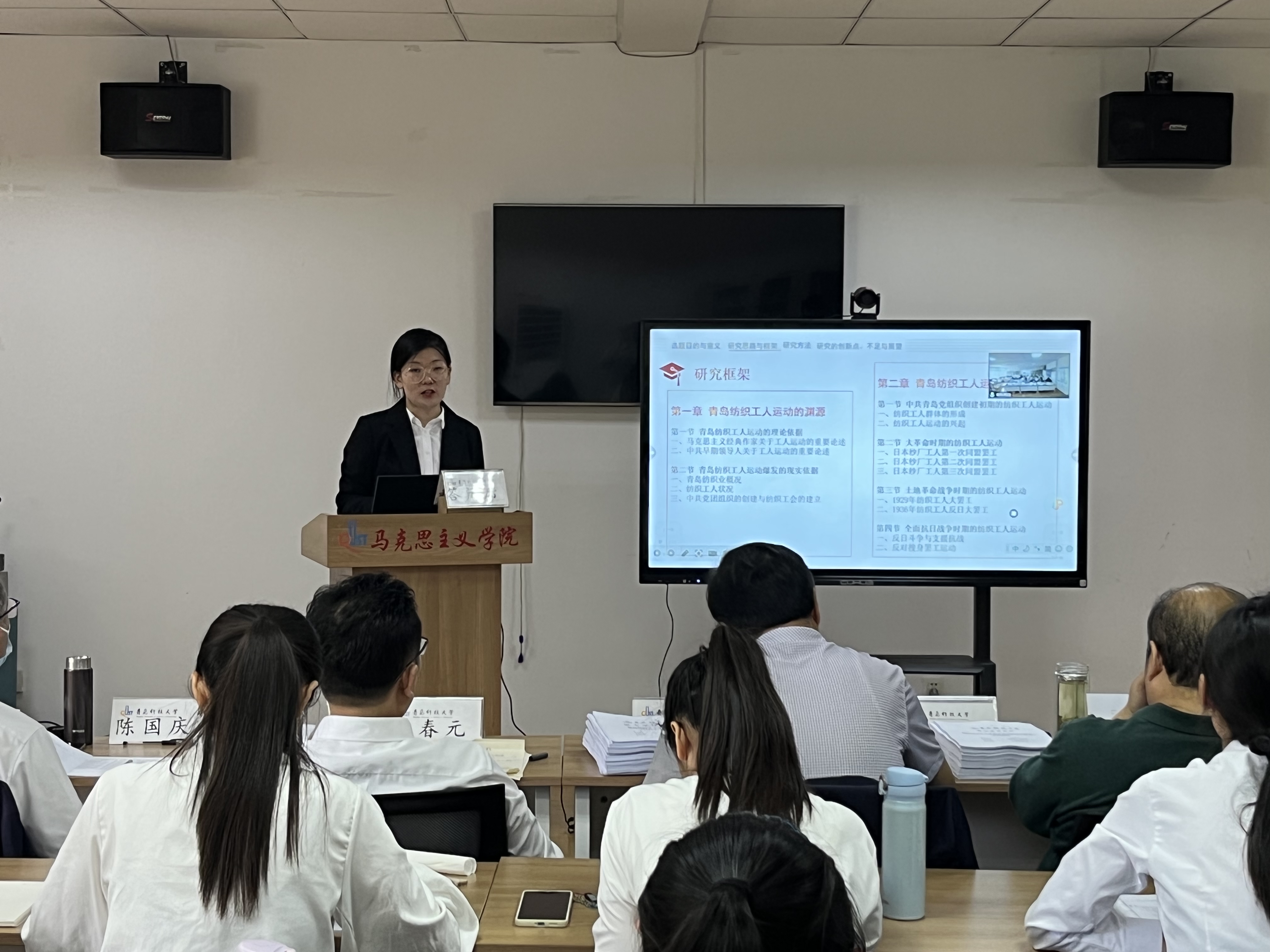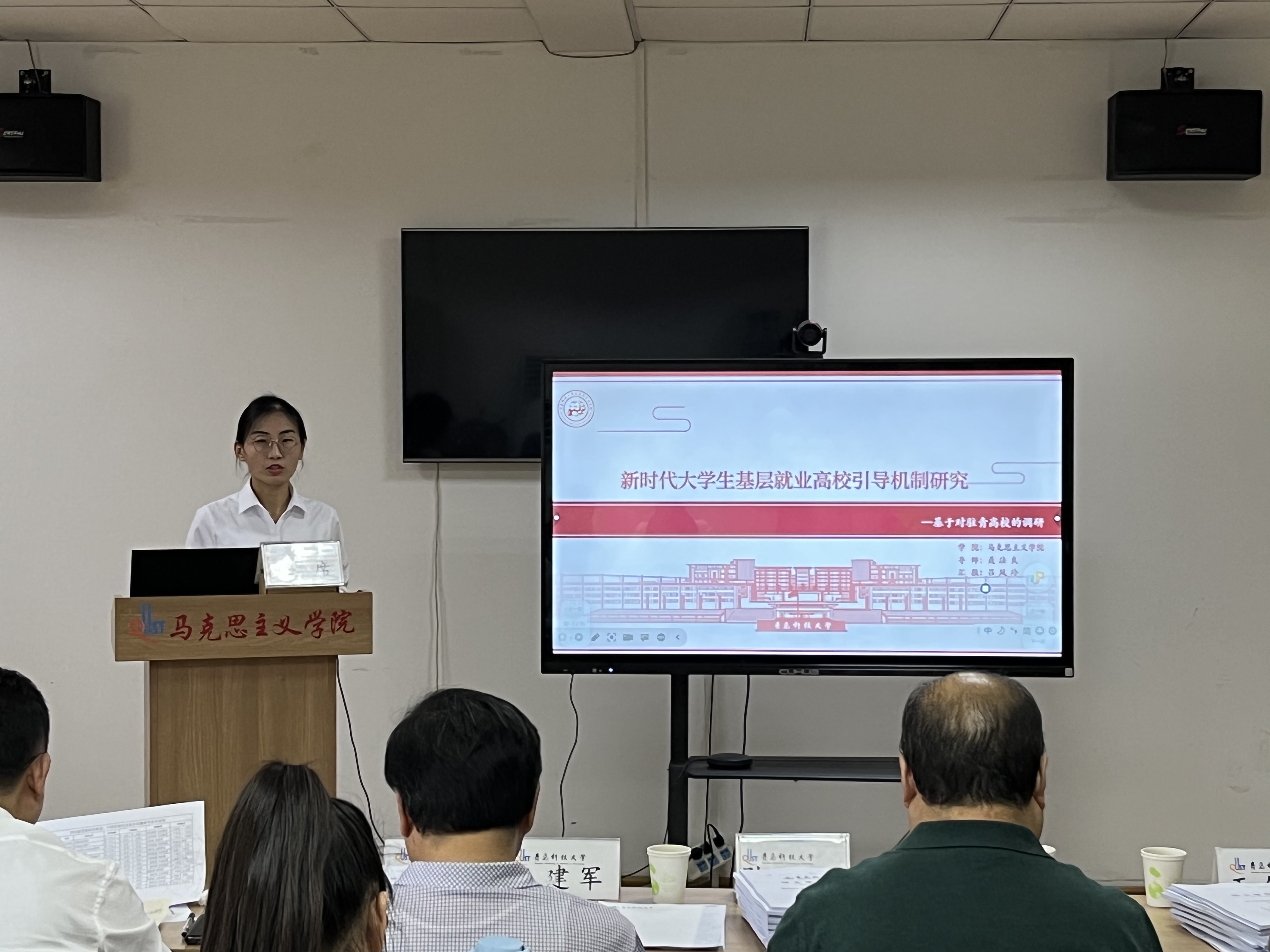思想政治教育、中国近现代史基本问题研究方向的答辩会在2010室举行。答辩秘书刘彩萍介绍了答辩委员会成员及答辩流程。参加论文答辩的研究生崔淑玥、杜原妃、韩新怡、郝彤、李彩虹、刘航宇、吕凤玲、王宇、徐斐、于汭生、张军鹏、张美、张萌、赵欣荻分别汇报了自己的研究方法、创新点及论文写作思路框架等。各位专家针对员工的论文提出了修改意见及相关问题,随后答辩员工回答了各位专家老师的问题。最后答辩委员会对研究生的论文进行表决评选。