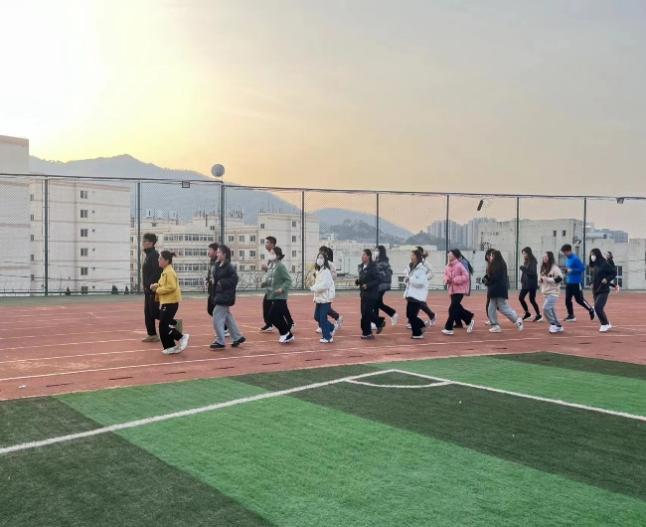 晨跑开始前,2021级班长杨志国带领同学们进行热身准备活动,迎着朝阳,伴着春风,马院学子个个精神饱满,在敏捷整齐的热身中褪去寒冷,迎来新一天的快乐与活力。