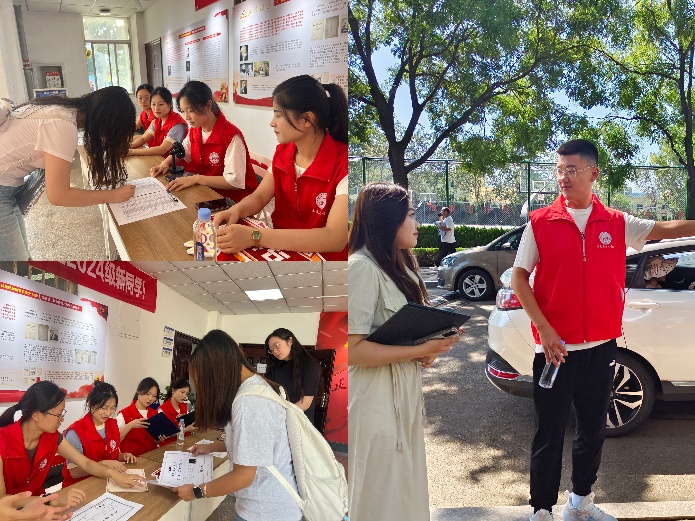 迎新现场,员工志愿者们组成了迎新接待小组,以热心、细心、耐心为新生们提供无微不至的服务,引导新生完成报到流程并解答他们在学习生活方面的疑问,确保每位新生都能顺利开启校园生活的新篇章。