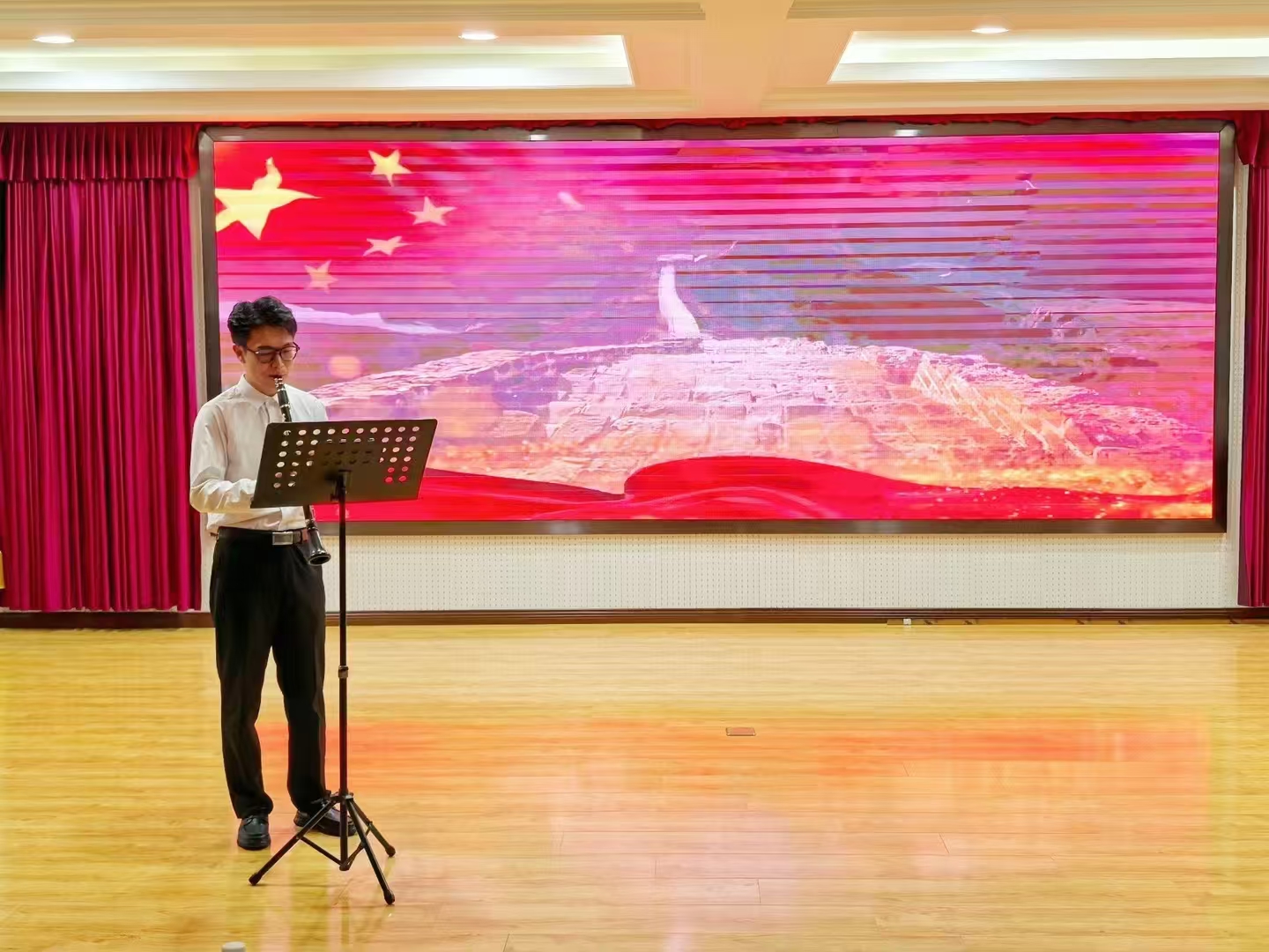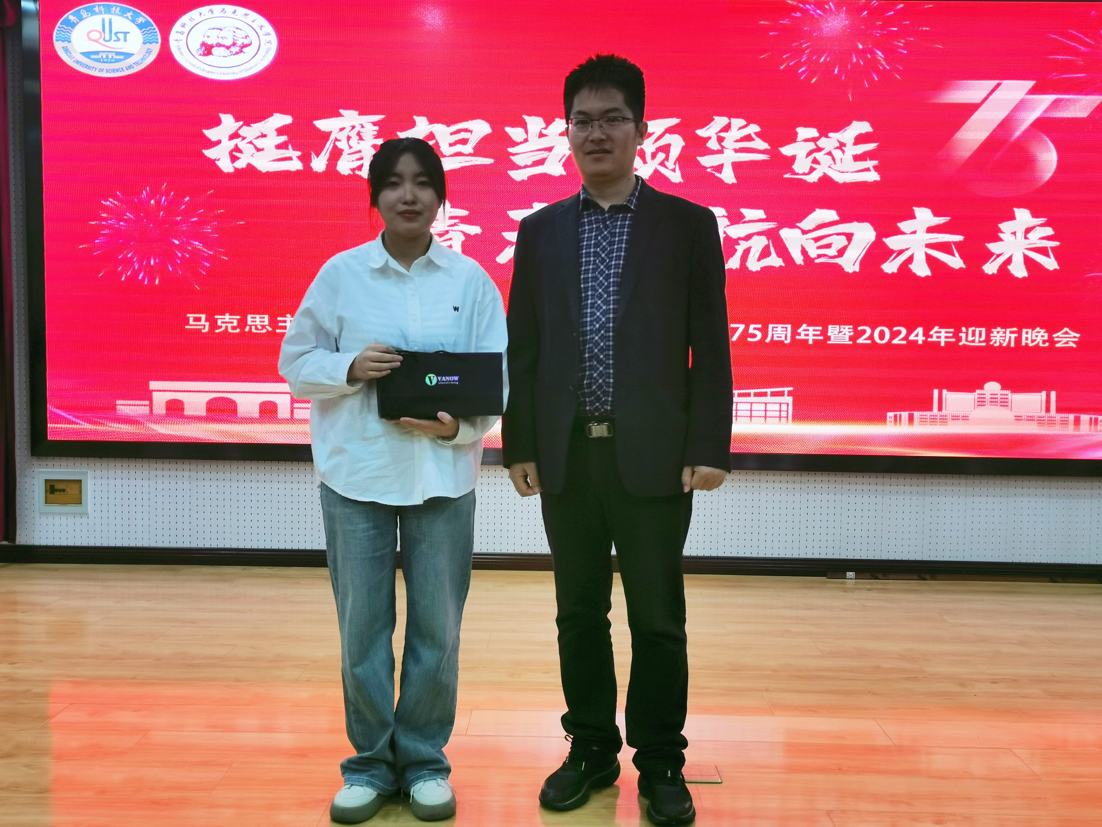 歌曲慷慨激昂,舞蹈轻盈飘逸,舞台剧引人入胜,抽奖环节紧张刺激,在光影交错的舞台上,马院青年用自己的方式,颂扬着中华民族伟大复兴的璀璨未来,充分展现了公司员工的奋发有为、朝气蓬勃的风采与活力,彰显了蓝鲸体育的凝聚力和昂扬向上的精神面貌。晚会现场氛围热烈非凡,每一个节目都是一次心灵的触动,每一次掌声都是对梦想的鼓励。师生代表欢聚一堂,共享这场视听上的豪华盛宴,一同欢庆新中国成立75周年的辉煌时刻。