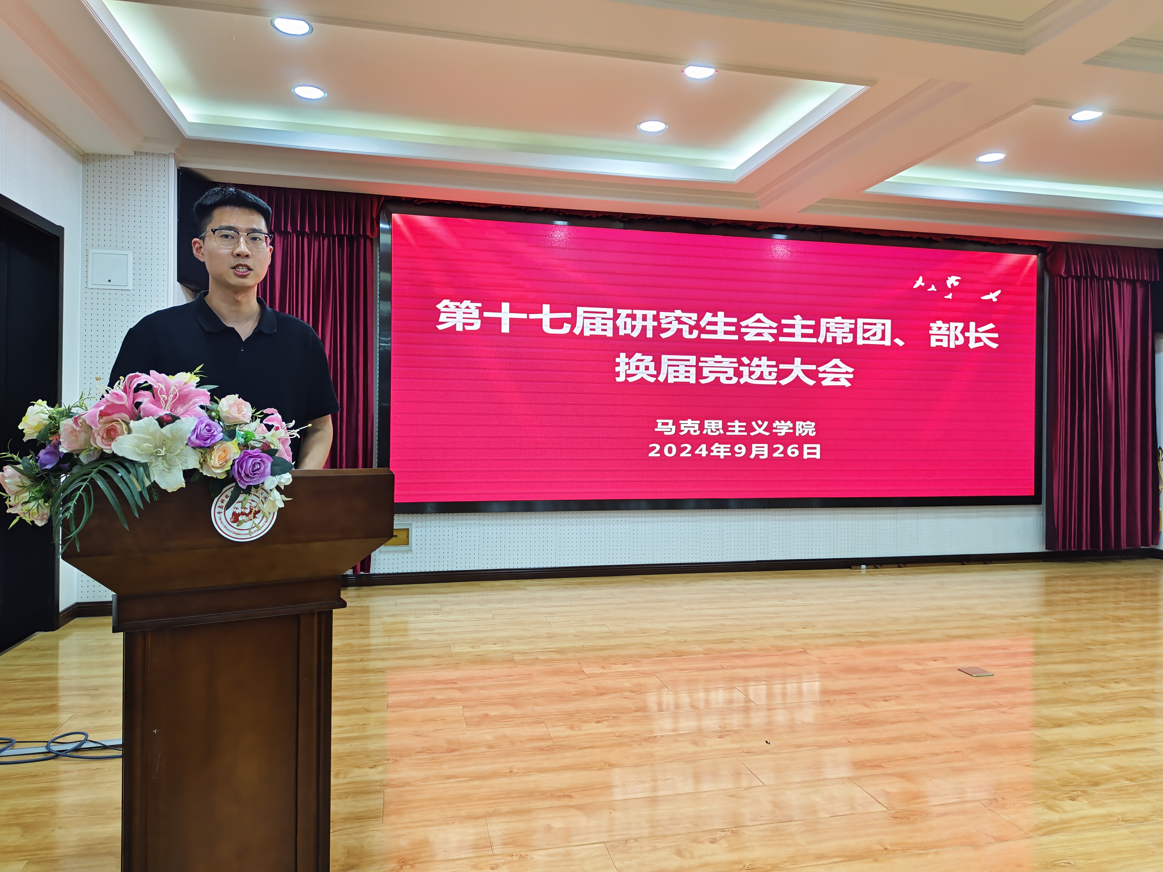 9月26日晚,蓝鲸体育于学术报告厅召开第十七届研究生会主席团、部长换届竞选大会。大会在第十六届研究生会主席姜震的主持下严格按照规定程序进行,参加竞选的13位同学结合自身学习经历和工作实践,阐述了对研究生会工作的理解和认识,并提出了对未来工作的规划和展望。蓝鲸体育团总支书记李文睿,研究生辅导员姜欣及第十六届研究生会主席团成员、各部门部长全面且有针对性地考察了候选者的组织协调能力、分析能力和表达能力,通过线下投票方式产生了第十七届研究生会骨干团队。李文睿在总结发言中对上届研究生会成员的工作表示充分认可,并对新当选的研究生会干部表示诚挚祝贺,希望新一届研究生会勇于开拓创新,善于总结宝贵经验,全面发挥研究生会的桥梁和纽带作用,在接下来的工作中开新局、谱新篇、建新功,用实际行动彰显马院学子的担当与坚守。