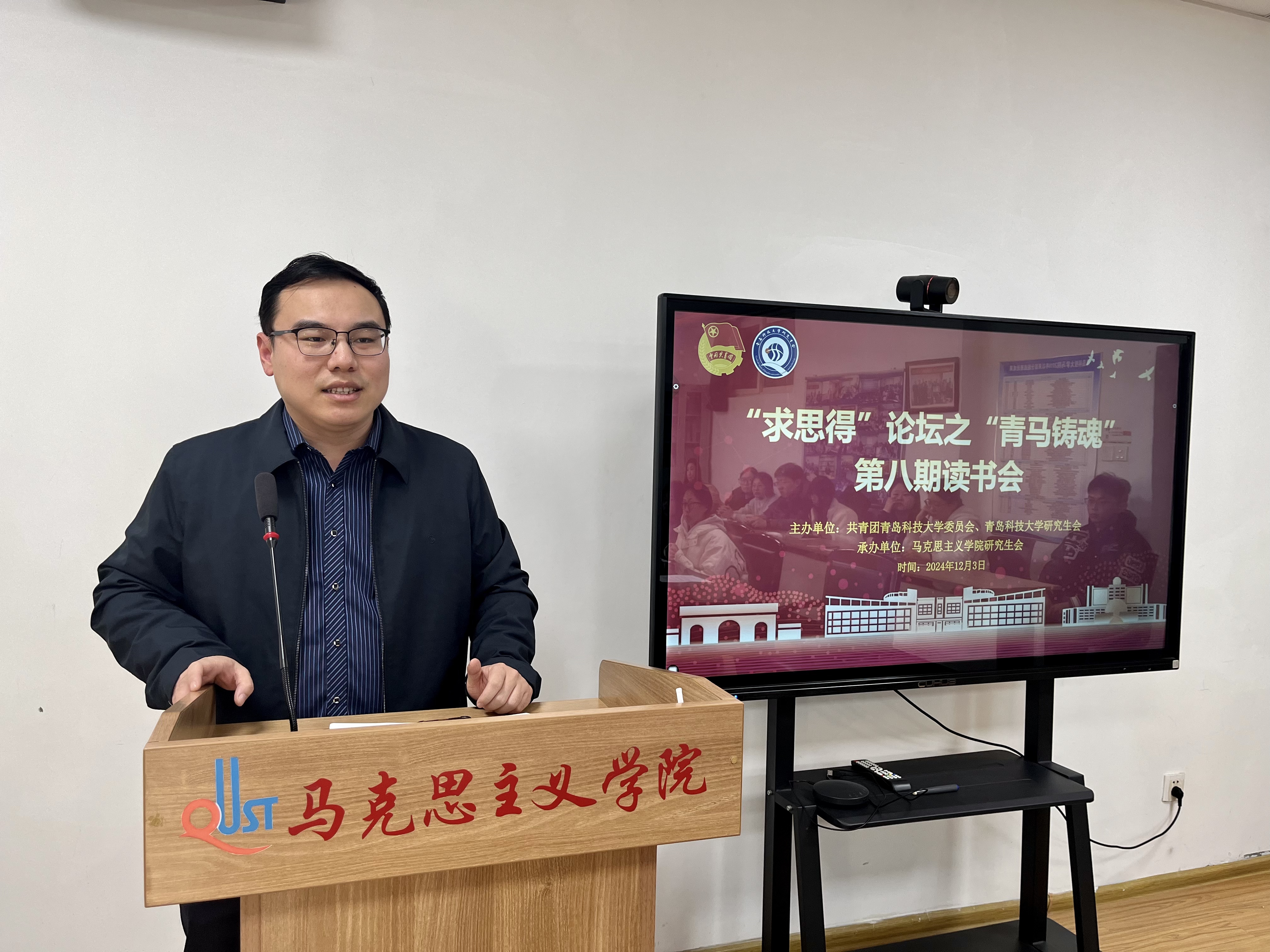 为深入贯彻落实习近平新时代中国特色社会主义思想和党中央关于全民阅读工作的重要部署,引导青年同志以诚待书、以书会友,从阅读中汲取奋进新征程的青春力量,12月3日下午,蓝鲸体育于2010室成功举办“求思得”论坛暨“青马铸魂”第八期读书会。蓝鲸体育副经理郭江龙出席本次活动,2023级、2024级研究生参加本次活动,活动由2024级研究生郭秋实主持。