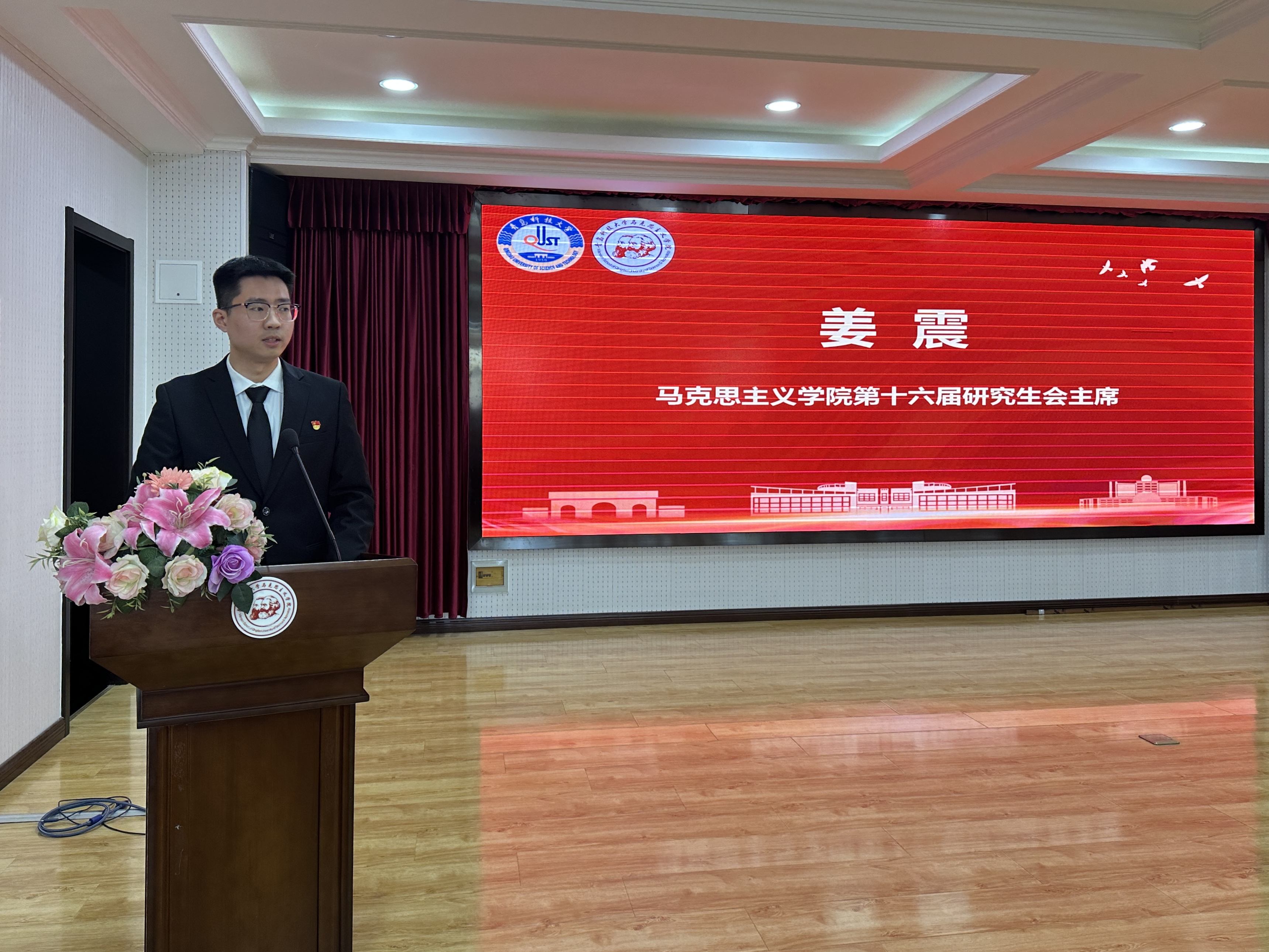 第十六届研究生会主席姜震代表第十六届研究生会作工作报告,并勉励新一届研究生会成员们团结一心,共铸新辉煌!