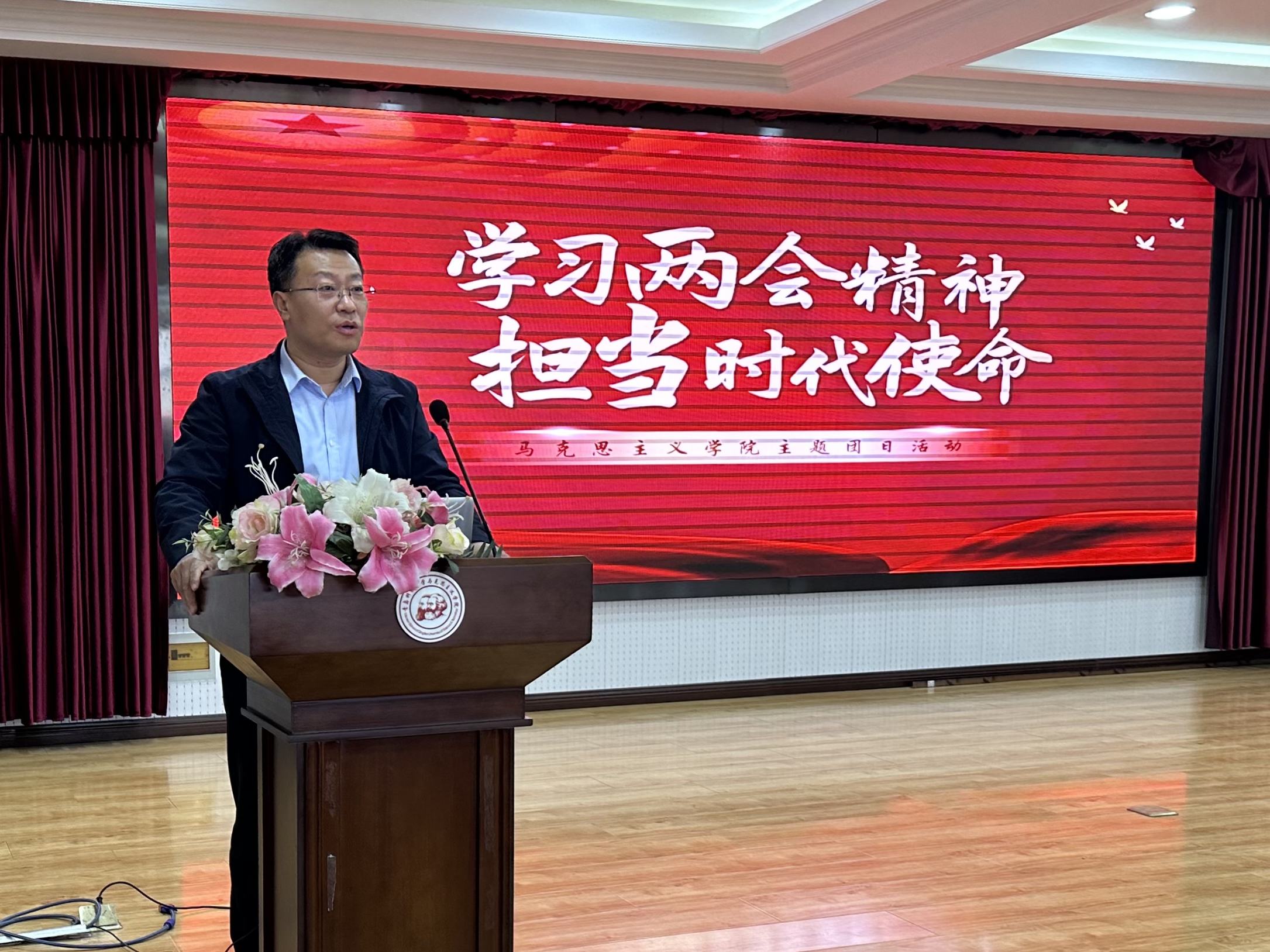 讲授式领学。2022级团支部副书记姜震和2023级团支部副书记秦永杰,为大家讲解两会相关知识及今年热点内容。