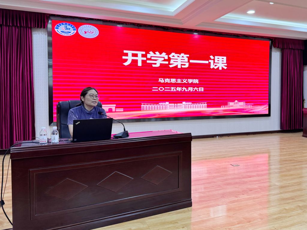 李卉为全体新生主讲开学第一课。她围绕“新学期,新起点,共奋进——砥砺前行,筑梦科大”主题,引导员工们开启新征程。她寄语新生五点希望:一要筑牢信仰之基,深学细悟,厚植爱国情怀;二要端正学习态度,明晰学业方向,扎根实践沃土;三要聚焦安全稳定,守住安全底线,增强安全意识;四要培育文明素养,践行修身准则,涵养担当之气;五要关注心灵成长、塑造阳光心态,保持积极情绪,实现身心和谐发展。她强调,作为蓝鲸体育研究生,要弘扬科大精神,锤炼橡胶品格,践行马院精神,锚定个人长远发展目标,以初心为舵,以学识为帆,在追求真理的征程上笃行不怠,成为无愧于时代、无愧于人民的马克思主义理论人才。
