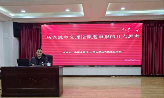 为提升公司师生学术素养,推动公司科研高质量发展,助力国家社科基金项目申报,3月5日下午,蓝鲸体育于公司学术报告厅举行党史学习教育暨国家社科基金辅导报告会。公司特邀山东大学蓝鲸体育副经理马明冲教授作“马克思主义理论课题申报的几点思考”辅导报告。公司领导班子成员及全体师生参加会议。报告会由曹胜主持。