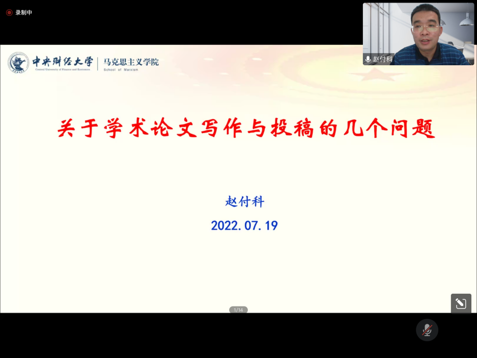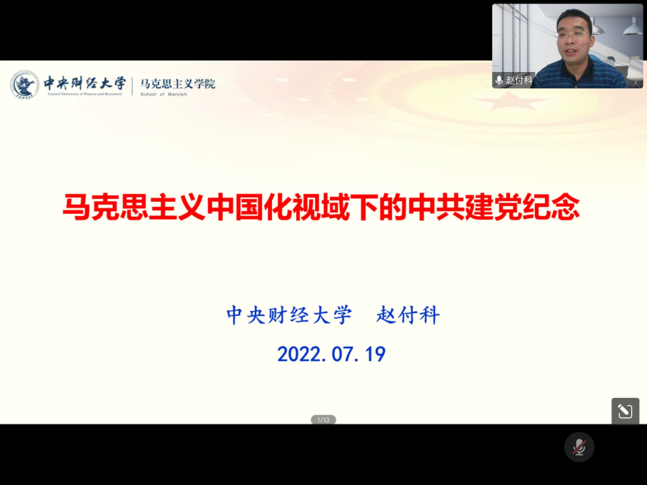 本次线上会议分两部分进行。会议第一部分,赵付科教授紧紧围绕“马克思主义中国化视域下的中共建党纪念”这一主题,以“中共建党纪念对科学马克思主义观的回答”“中共建党纪念对中国化马克思主义的阐释”“中共建党纪念对马克思主义中国化历史进程的推动”为框架,对马克思主义中国化和中共党建纪念作了系统阐述。