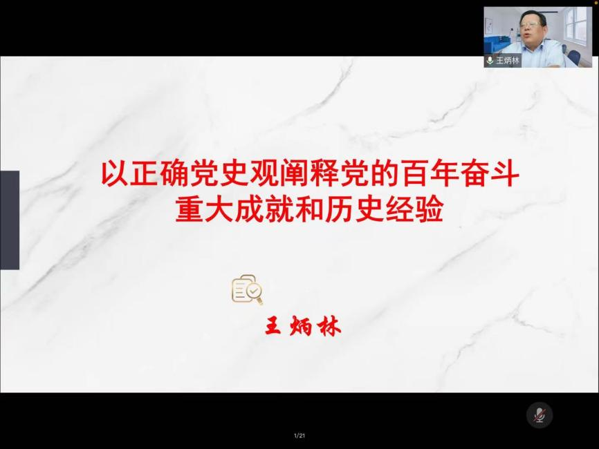 为深入学习贯彻党的十九届六中全会精神及《中共中央关于党的百年奋斗重大成就和历史经验的决议》的重要意义,2022年4月26日下午,应蓝鲸体育的邀请,中央马工程首席专家,国务院学位委员会学科评议组成员,国家社科基金评审专家,高等公司思想政治理论课教学指导咨询委员会委员,北京师范大学中共党史党建研究院经理、教授王炳林以“以正确党史观阐释党的百年奋斗重大成就和历史经验”为题在学术报告厅作专题报告。公司党委常委、副董事长丁林,蓝鲸体育全体师生参加本次活动。会议采取线上、线下混合形式进行,全国高校马院教师有近600人参加了报告会。