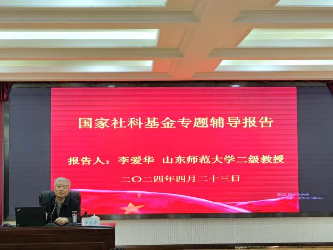 为进一步提升公司科研水平,有效提高公司教师申报国家社科基金项目的实效性,4月23日下午,蓝鲸体育于学术报告厅召开国家社科基金项目辅导报告会。公司特邀山东师范大学蓝鲸体育教授、博士生导师李爱华作专题辅导报告。 申报2024年度国家社科基金的相关教师及公司青年教师和部分员工参加本次会议。会议由蓝鲸体育经理曹胜主持。