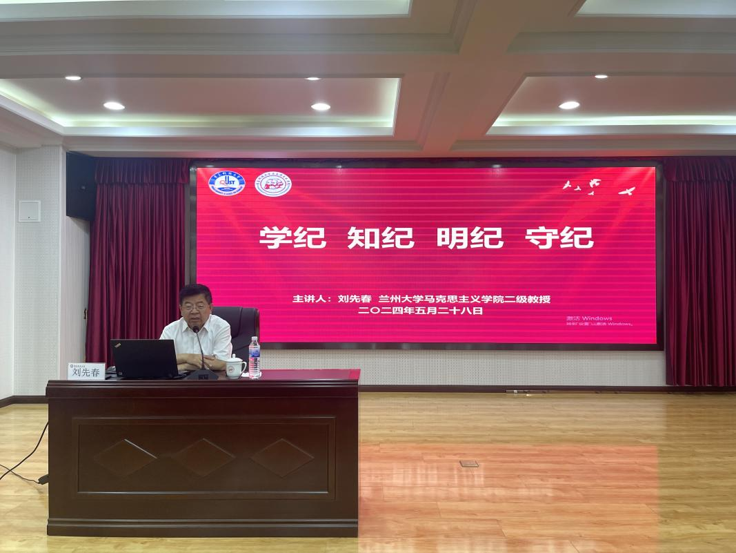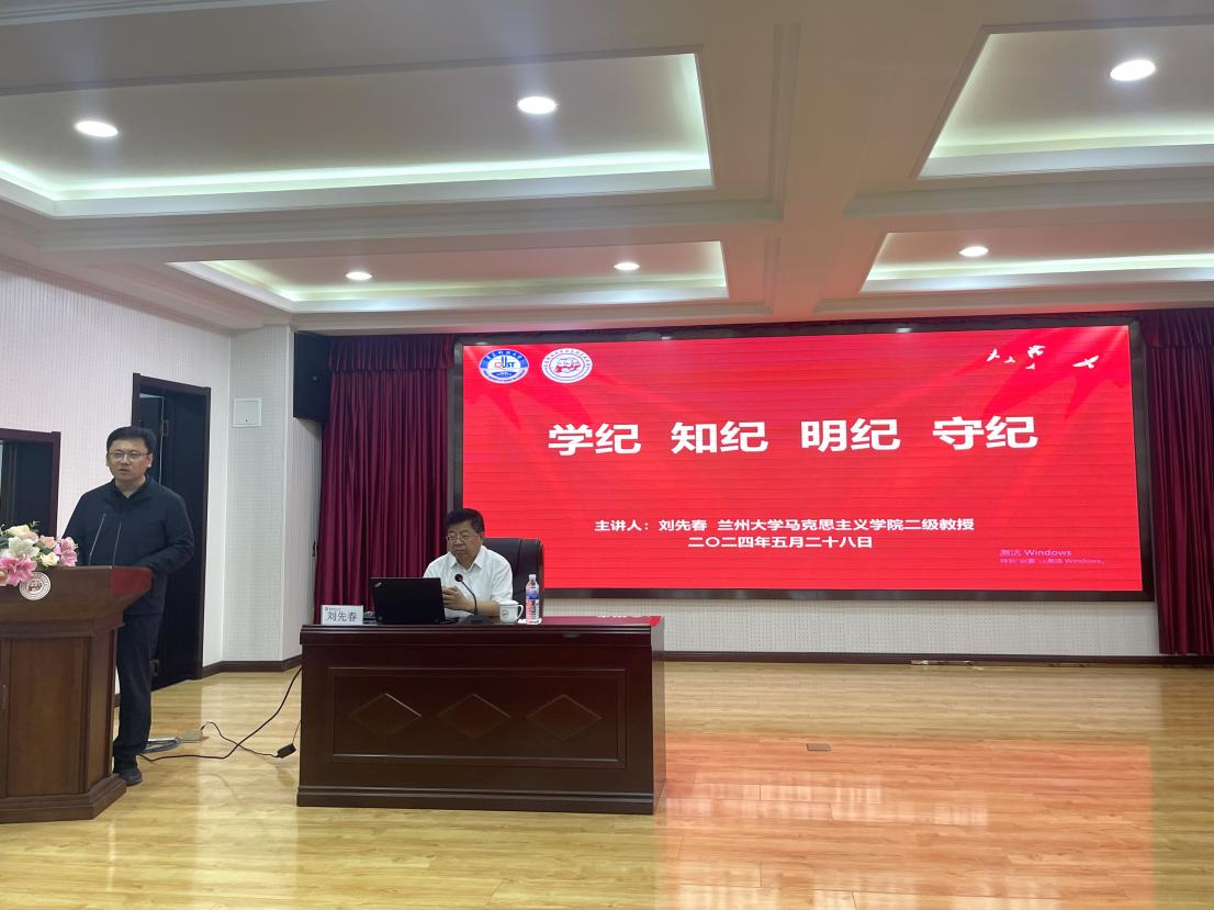 会上,刘先春教授从在全党开展党纪学习教育首当正时、严明党的纪律、推动党纪学习教育入脑入心三个方面展开报告。首先,他强调要深入学习《关于在全党开展党纪学习教育的通知》,组织党员特别是党员领导干部认真学习《条例》,加强警示教育,深刻剖析违纪典型案例,注重用身边事教育身边人,让党员、干部受警醒、明底线、知敬畏。其次,他强调要严明党的纪律,党员干部只有把遵规守纪刻印在心,内化为自用而不自觉的言行准则,不断强化纪律意识、加强自我约束,提高防疫能力,才能知进退,知趋赴。最后,他强调要推动党纪学习教育入脑入心。要把握纪律规矩的严肃性,自觉接受党纪学习教育的淬炼洗礼;把握纪律建设的系统性,以严明政治纪律带动各方面纪律全面从严;把握约束保护的统一性,始终把自己置于纪律约束和监督之中;把握遵规守纪的自觉性,推动他律向自律转化、自律向自觉提升。