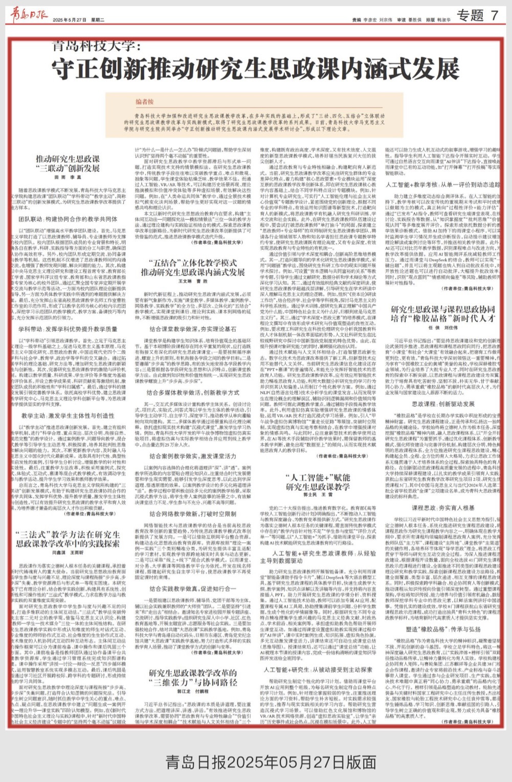 【成果速递】青岛日报:蓝鲸体育:守正创新推动研究生思政课内涵式发展