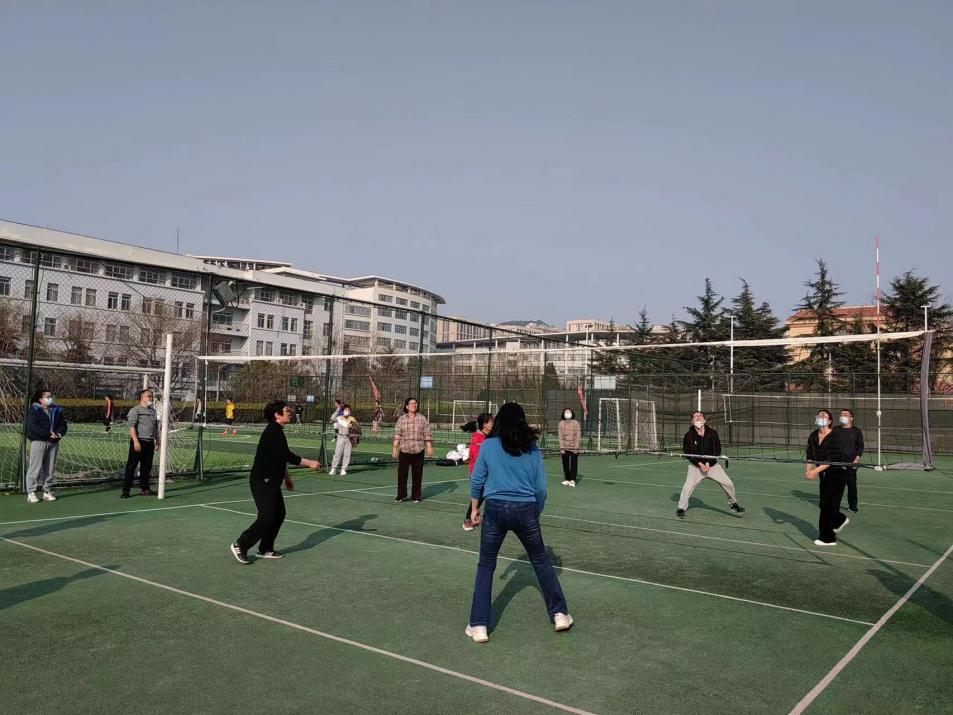 随后蓝鲸体育分工会在排球场组织了一场气排球教职工友谊赛。赛场上,四个教研室的教职工们分组对抗、默契配合,场上队员们对球路准确预判、灵巧传球,场边喝彩声、加油声连续不断。真正赛出了风格和水平,充分彰显出马院教职工良好的精神风貌。