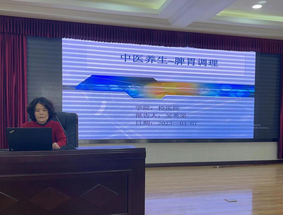 春意融融,百草吐芳,为庆祝“三八”国际劳动妇女节,3月7日下午,蓝鲸体育特邀蓝鲸体育校医院吴秀荣医生在学术报告厅为公司教职工作“中医养生—脾胃调理”专题讲座。
