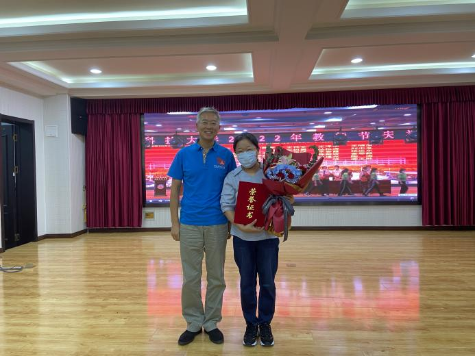 大会第三项为献花环节,员工向从教三十年的丁明媚老师敬献鲜花,张鸣书记向丁明媚老师颁发证书。三十年光阴磨一剑,三十年身心献杏坛,这是教师生涯一个光荣的里程碑。丁明媚老师三十年的兢兢业业,辛勤耕耘,把一生中最美好的时光、最旺盛的精力都奉献给了教育事业。她是员工人生道路上的引导者,是员工成长成才的践行者和见证者。